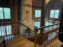 Absolutely the best time!! Beautiful & Scenic! Relaxing Hot Tub; huge stone fireplace with roaring fires every night. Pool table excellent but in need of cues sticks. Everything was spotless & clean. The Kingsize bed was made with luxury sheets, pillows, duvet cover over fluffy down comforter. Big projection tv worked perfectly. We used the outdoor grille but had to go buy a lighter and charcoal. Bathrooms are older but clean. Never used the tub just the shower downstairs. We definitely will want to come back and rent this beautiful rustic cabin home again in future family visits.