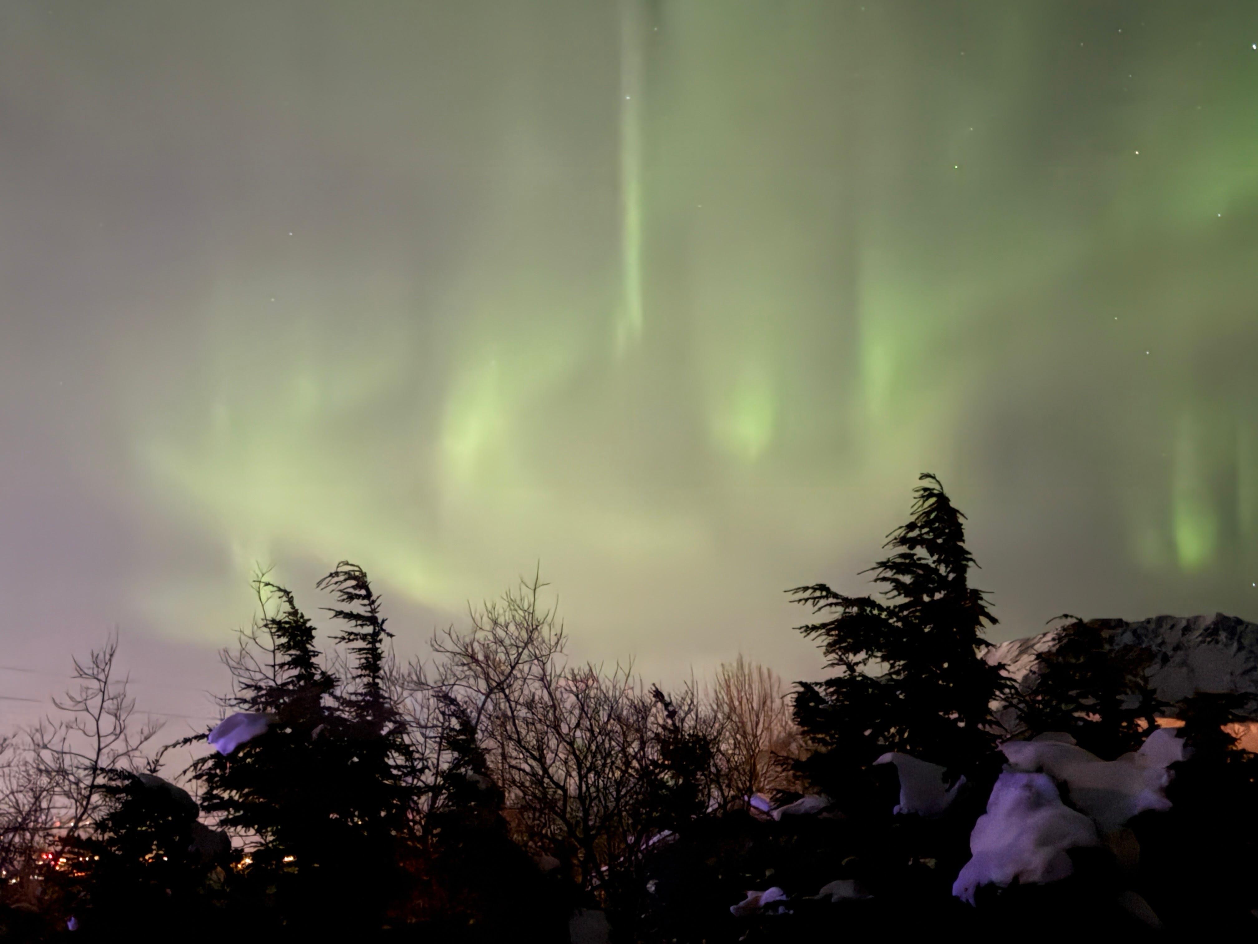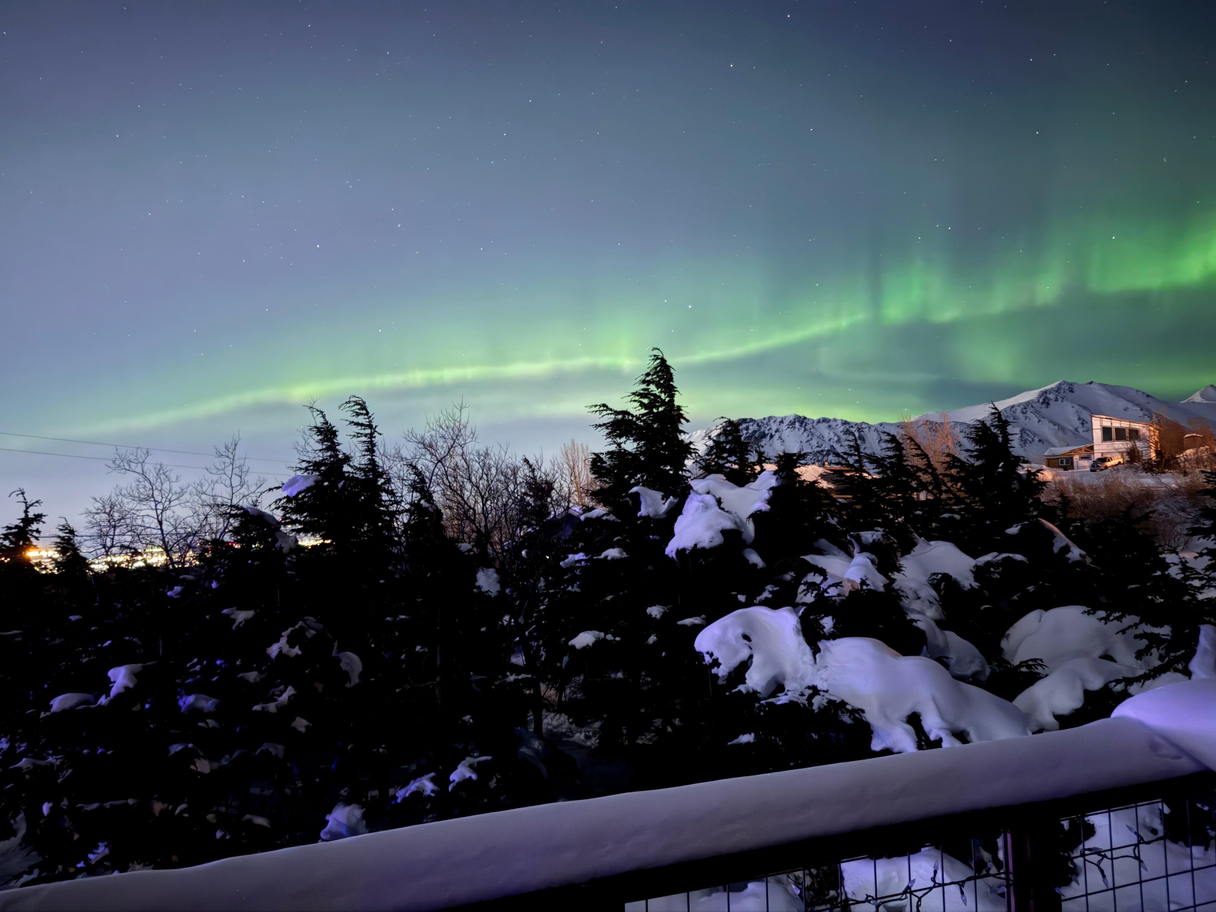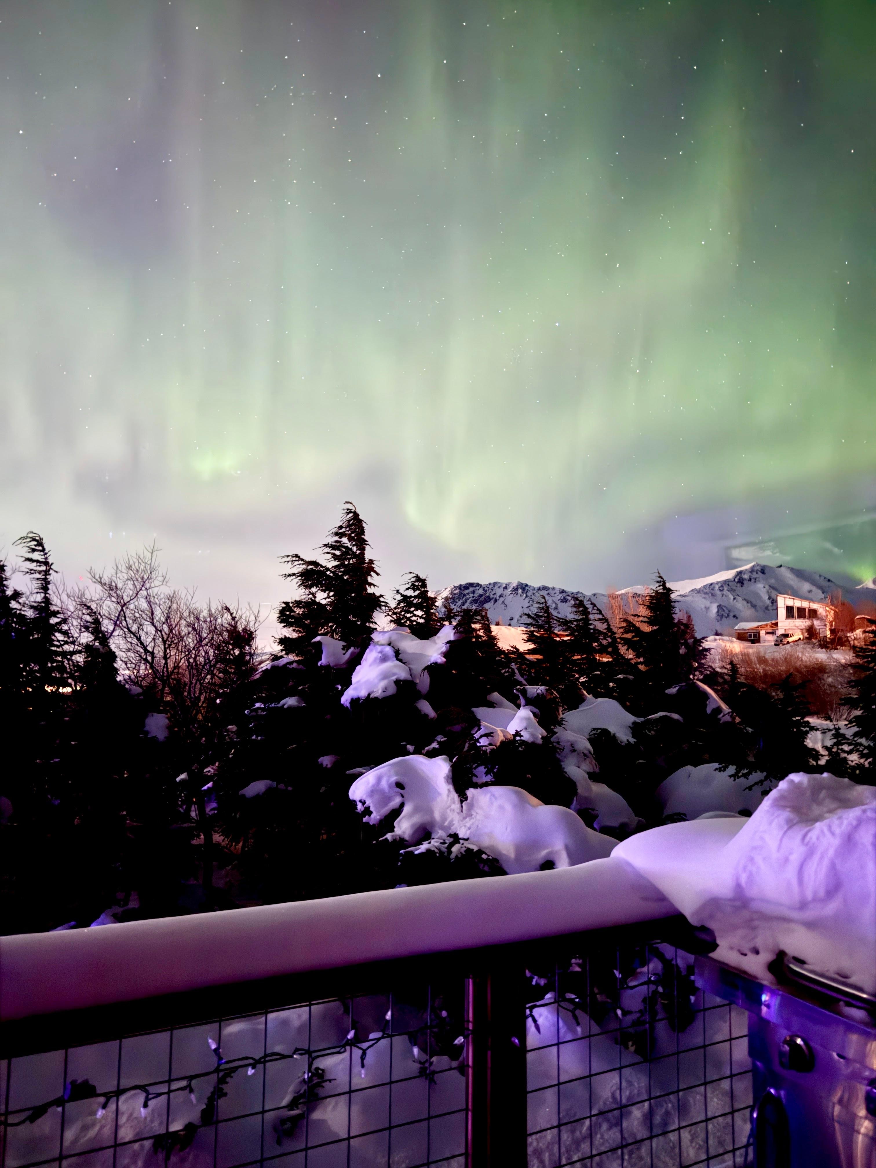 Nestled in a forest of Mountain Hemlocks hundreds of years old, the home is located in a quiet neighborhood only a 5-6 minute walk from the Glen Alps/Flattop Trailhead providing the most direct and easy access to Chugach State Park. There are endless possibilities for hiking, climbing, and skiing from the house. Or, if you prefer to sit and relax and read a book, the view from the deck or living room couch of the Anchorage skyline and Denali/Mt. McKinley is spectacular. Northern Lights may be visible from August-April. During the months of May-July, there is not enough darkness to see the Northern Lights. Wild animals are frequent visitors to the property. Brown and Black Bears, Moose, Lynx, Coyotes, Wolves, Wolverines, Porcupines, Eagles, Owls, Snowshoe Hare, Ravens, and even a Golden Retriever have all been visitors to this property. If you see the Golden, his name is Pete and he may lick your face or hand. Please leave all the other animals alone.