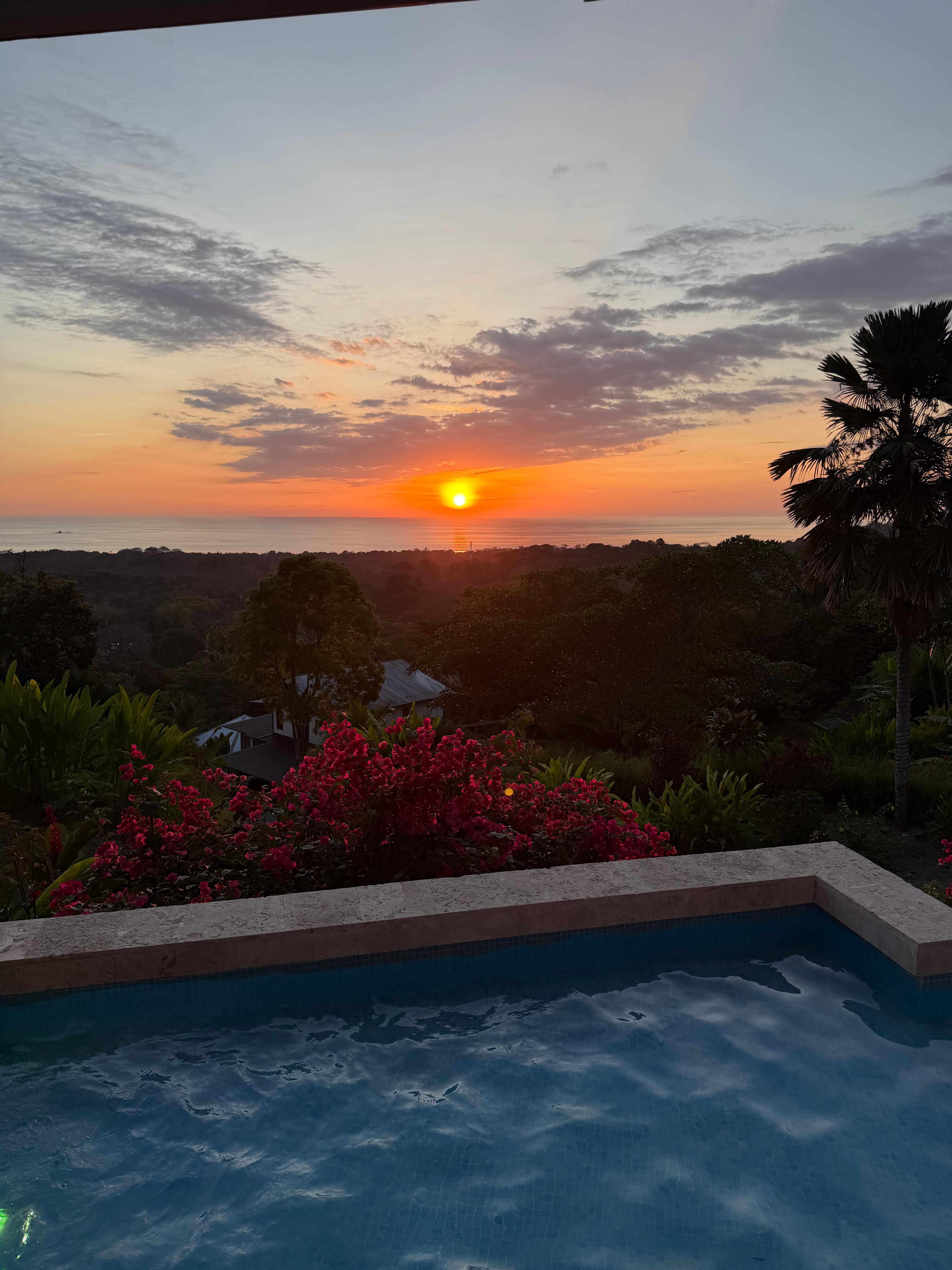 Infinity-edge pool with jungle and ocean views