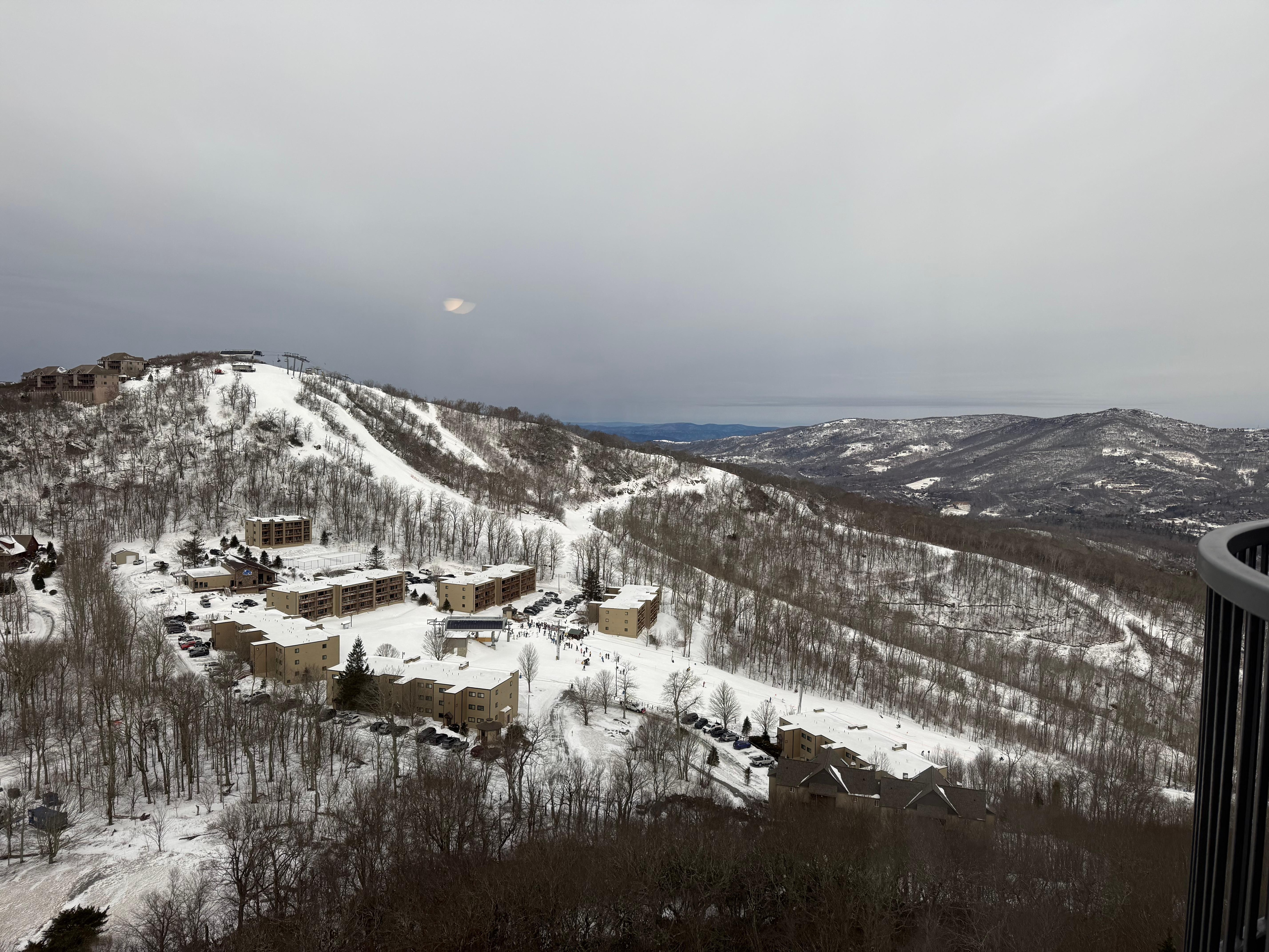 Large (1100 square foot) condominium high atop Sugar Mountain. Here you look out over several states at an elevation of more than 5000 feet. The beautiful scenery is viewable from each room or on your own private balcony. Condo is nestled in an alpine-like village, Banner Elk. High speed internet, free wifi, smart TV's.