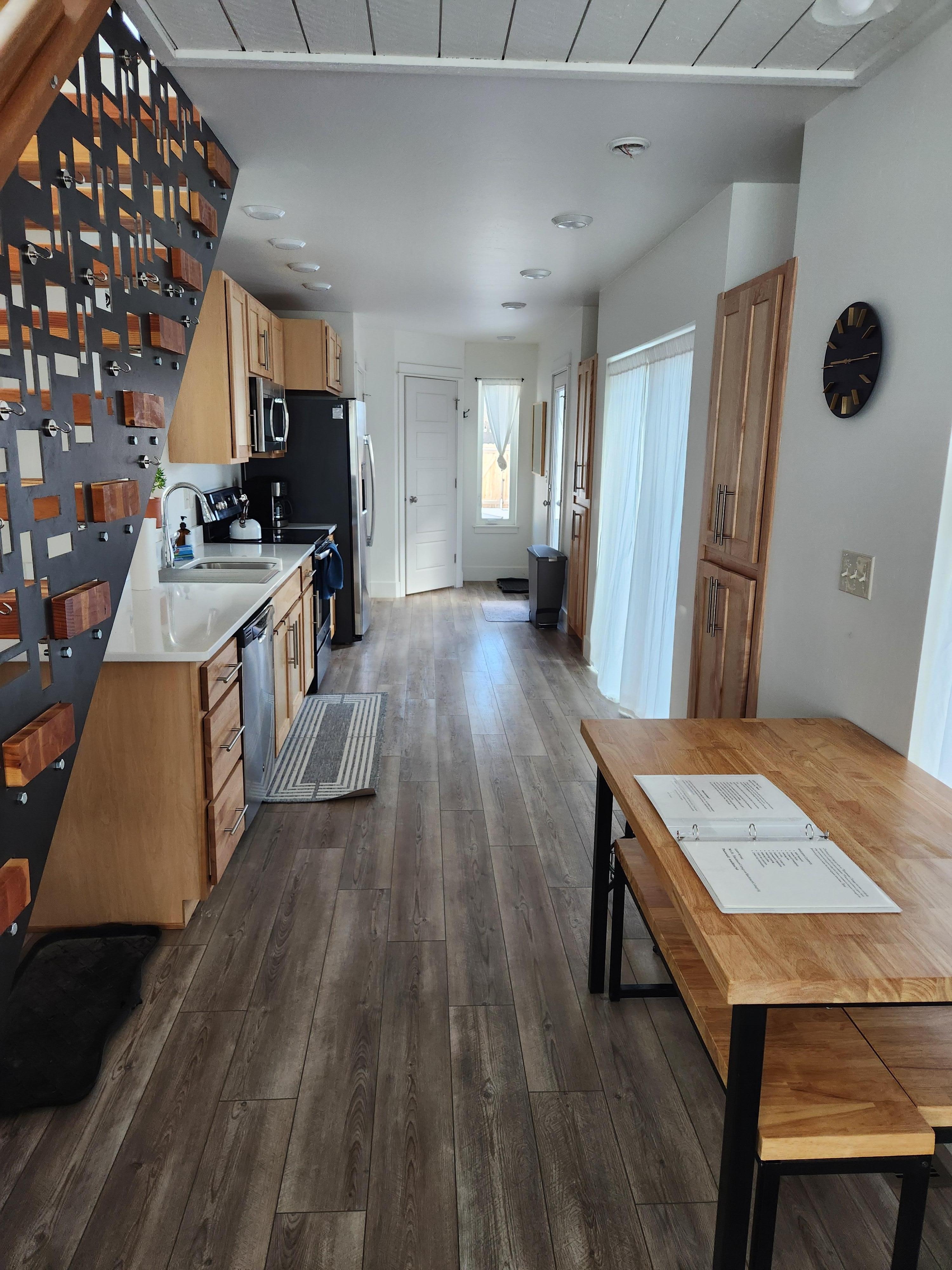 This stunning stand alone home has tons of natural light with filtered views of the Bridgers. Less than five-years-old, the unique modern design featuring a floating staircase of wood and steel. The upstairs features two bedrooms upstairs, nicely separated, each at the far ends of the house. Bedroom one has a king size bed, whereas bedroom two has a queen. Full bathroom with shower and tub upstairs, plus a 1/2 bath downstairs for your convenience. Full kitchen with everything you need to prepare a great meal. Seating areas indoors and out. Fantastic backyard includes a firepit and outdoor dining table. On that note . . . be sure to grab some firewood at the roadside stands or the grocery store.