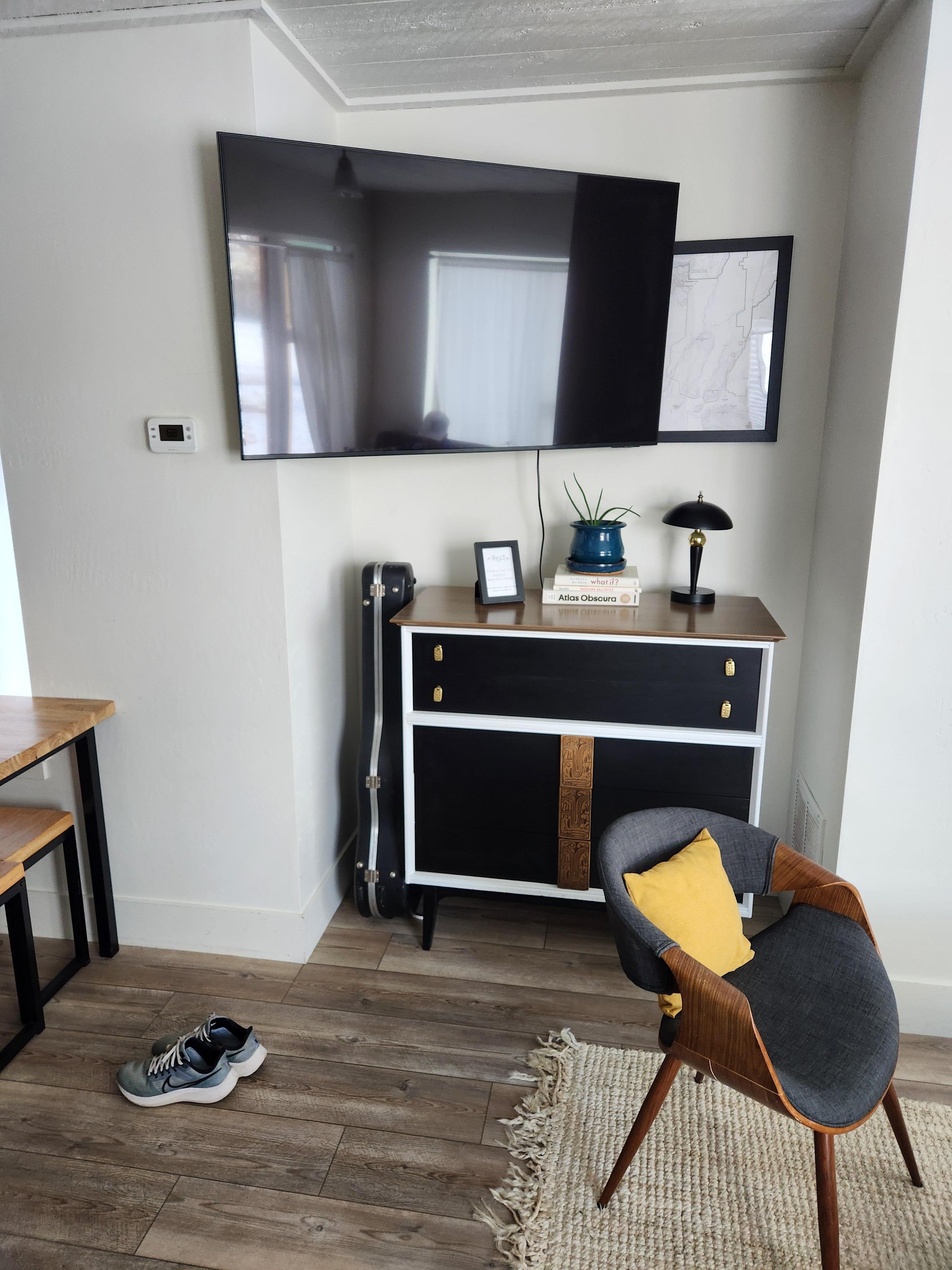 Staying in? Enjoy the 55" smart TV that conveniently folds out from the wall, connect to all you favorite streaming services. Or, disconnect and let your mind wander through our world class collection of fine art photography books. As lifelong collectors, we've sprinkled a number of curiosities throughout the house to peak your interest. Additionally, well loved games and toys for kids and adults can be found in the pantry.