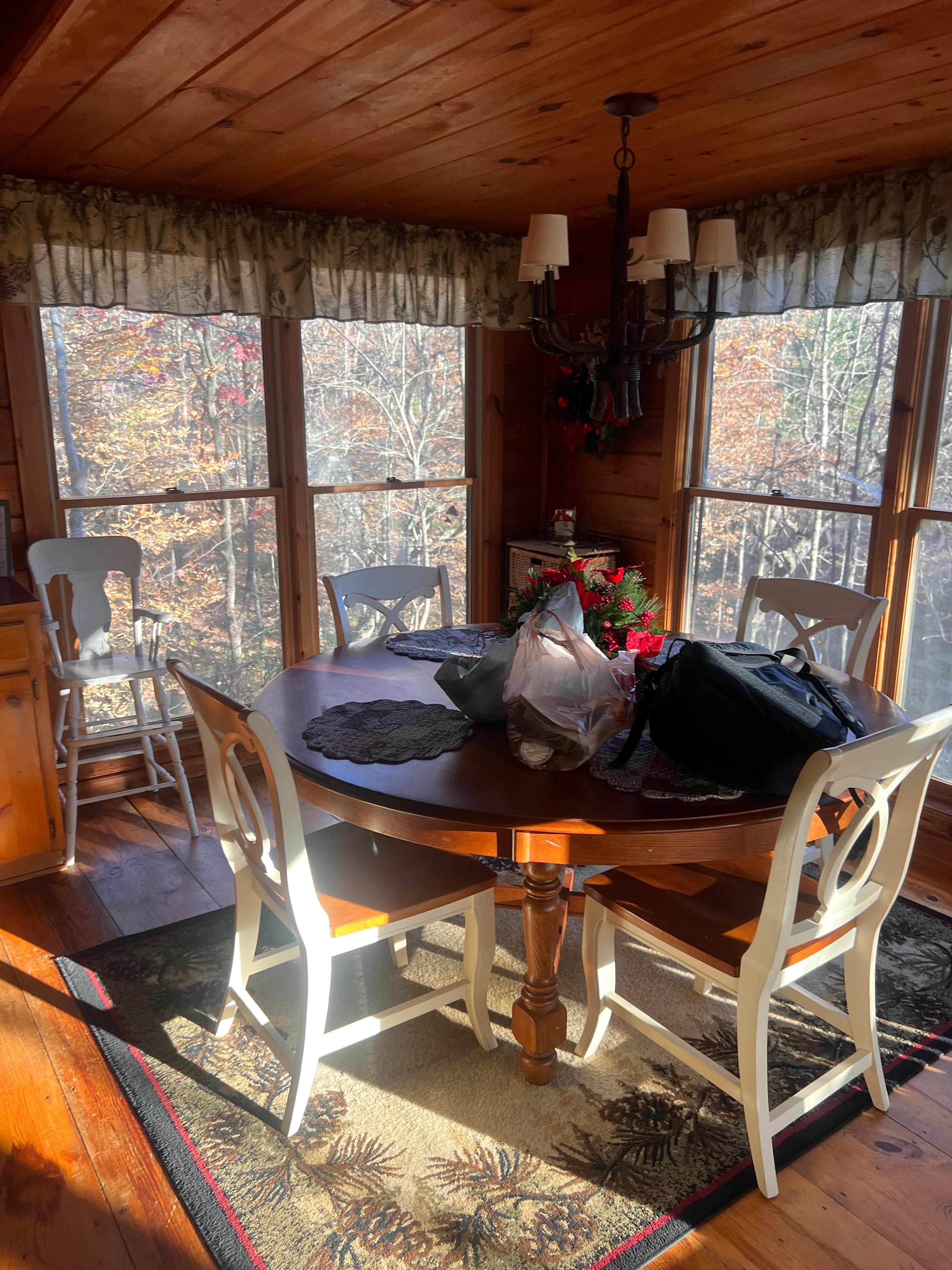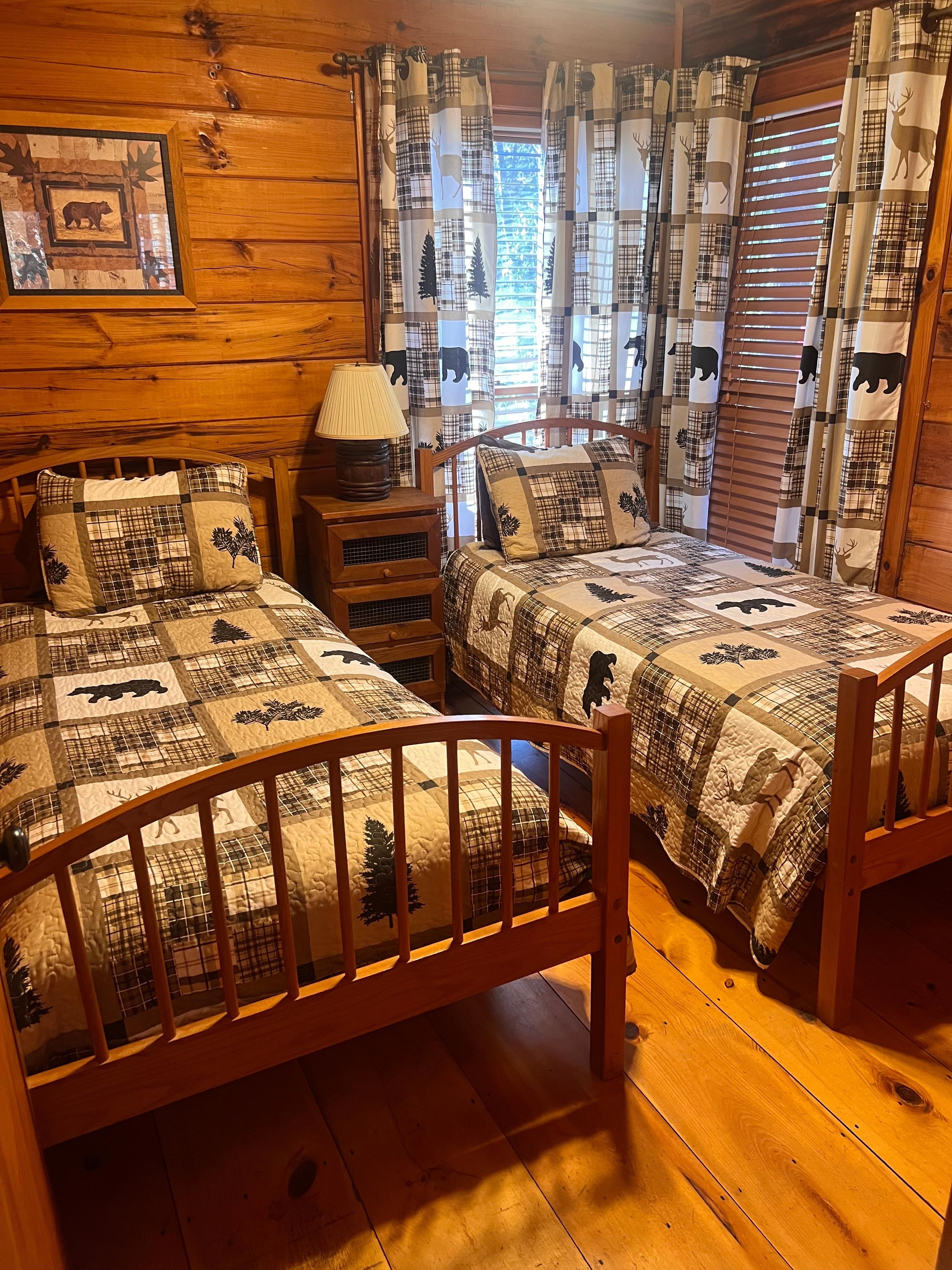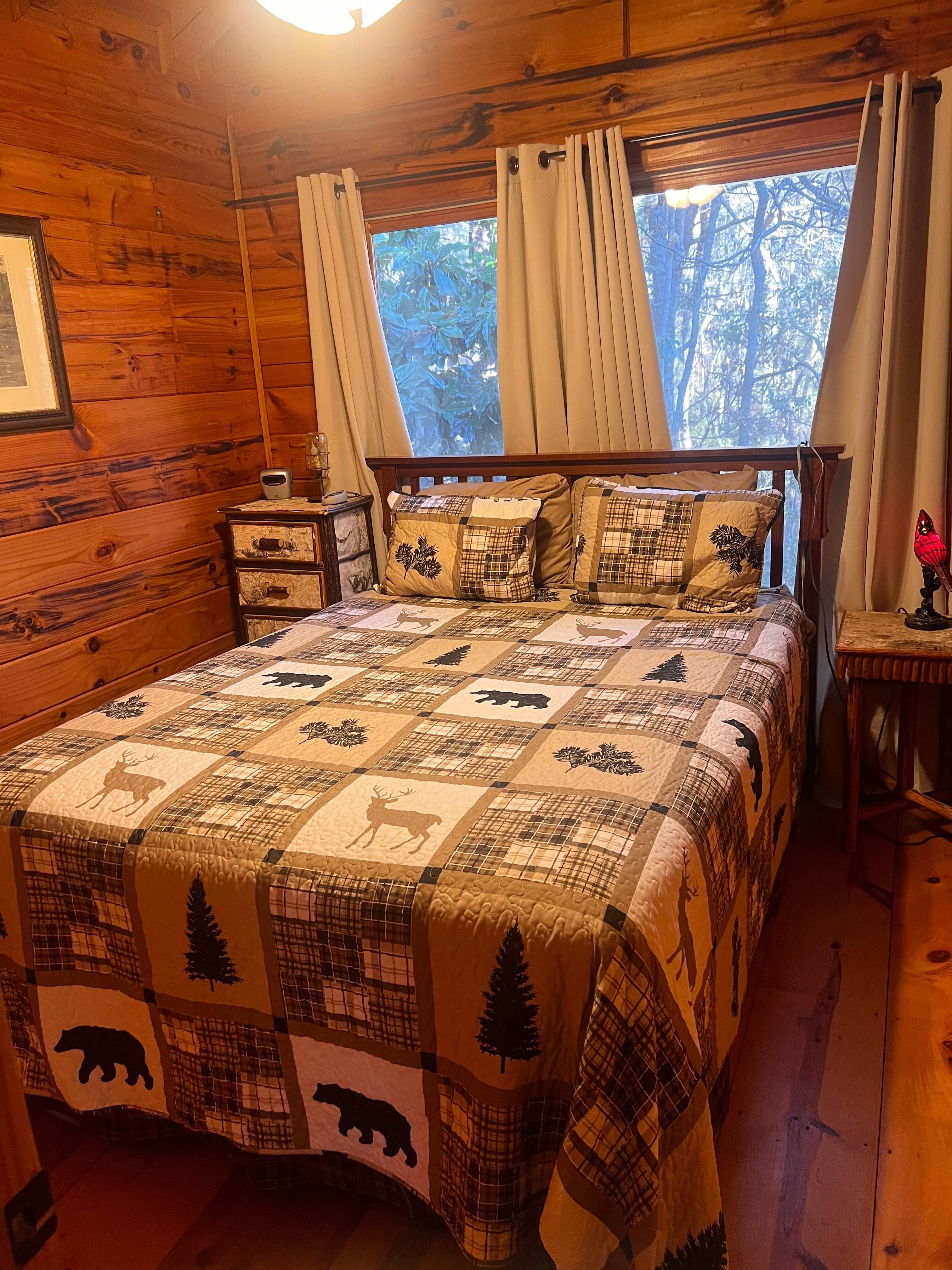 Cozy two bedroom, one bathroom cabin is perfect for a romantic getaway or a family vacation. Master bedroom has a queen size bed and the second bedroom has two twin beds. The lower deck has a newly added outdoor dining table and conversation area. Spend the day hiking the Benton-Makaye trail, enjoy roasting marshmallows around the fire pit, or fishing at Lake Cherry Log. Take the Blue Ridge Scenic Railway train to Copper Hill, Tennessee or explore the many nearby apple orchards, antique shopping, fine dining, micro breweries, or zip lining! The cabin is 2.6 miles off Highway 515 ( 8 minute drive) making it convenient to downtown Blue Ridge.