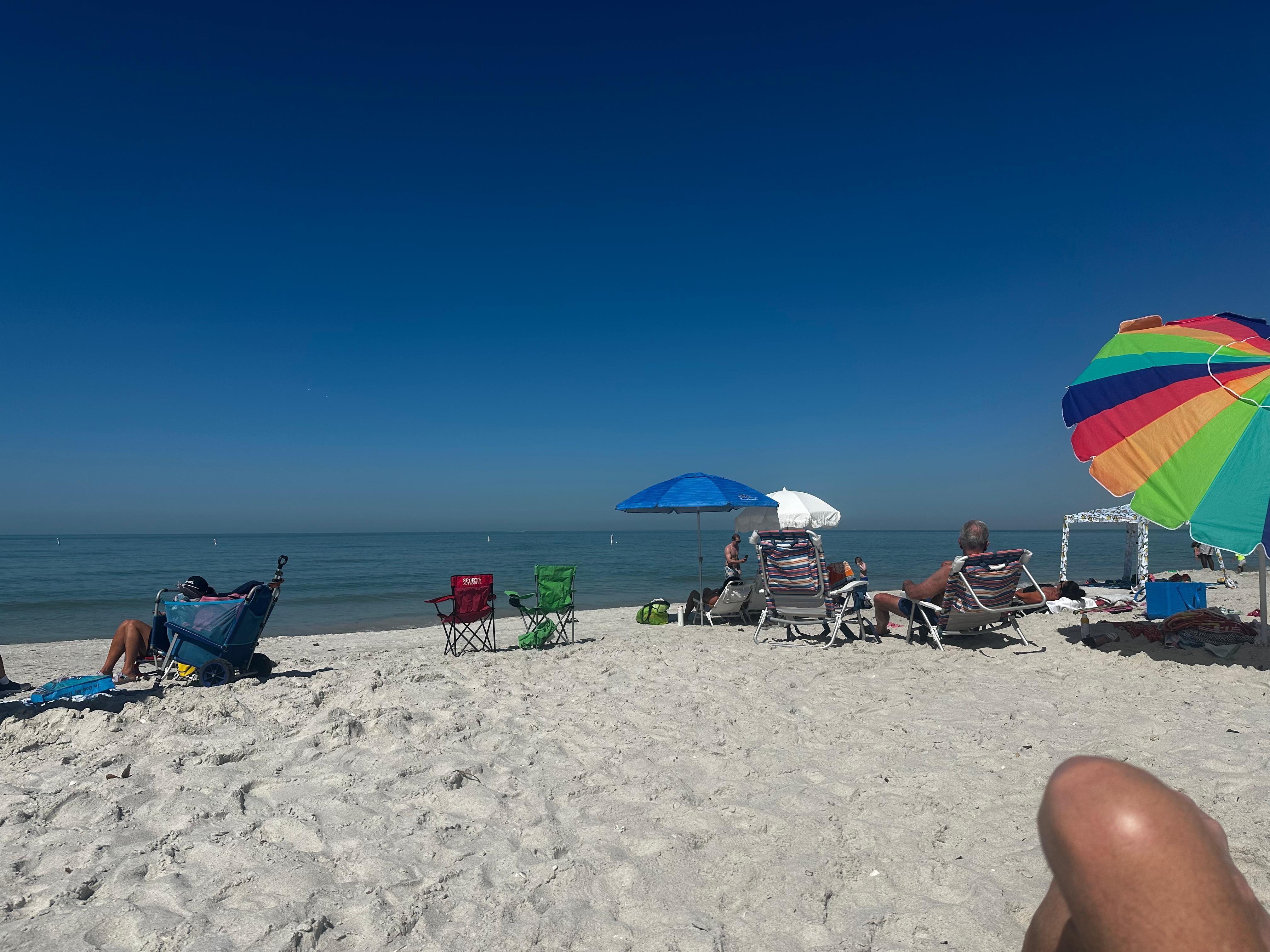Beach gear included: 4 beach chairs, umbrella, cooler, and towels.