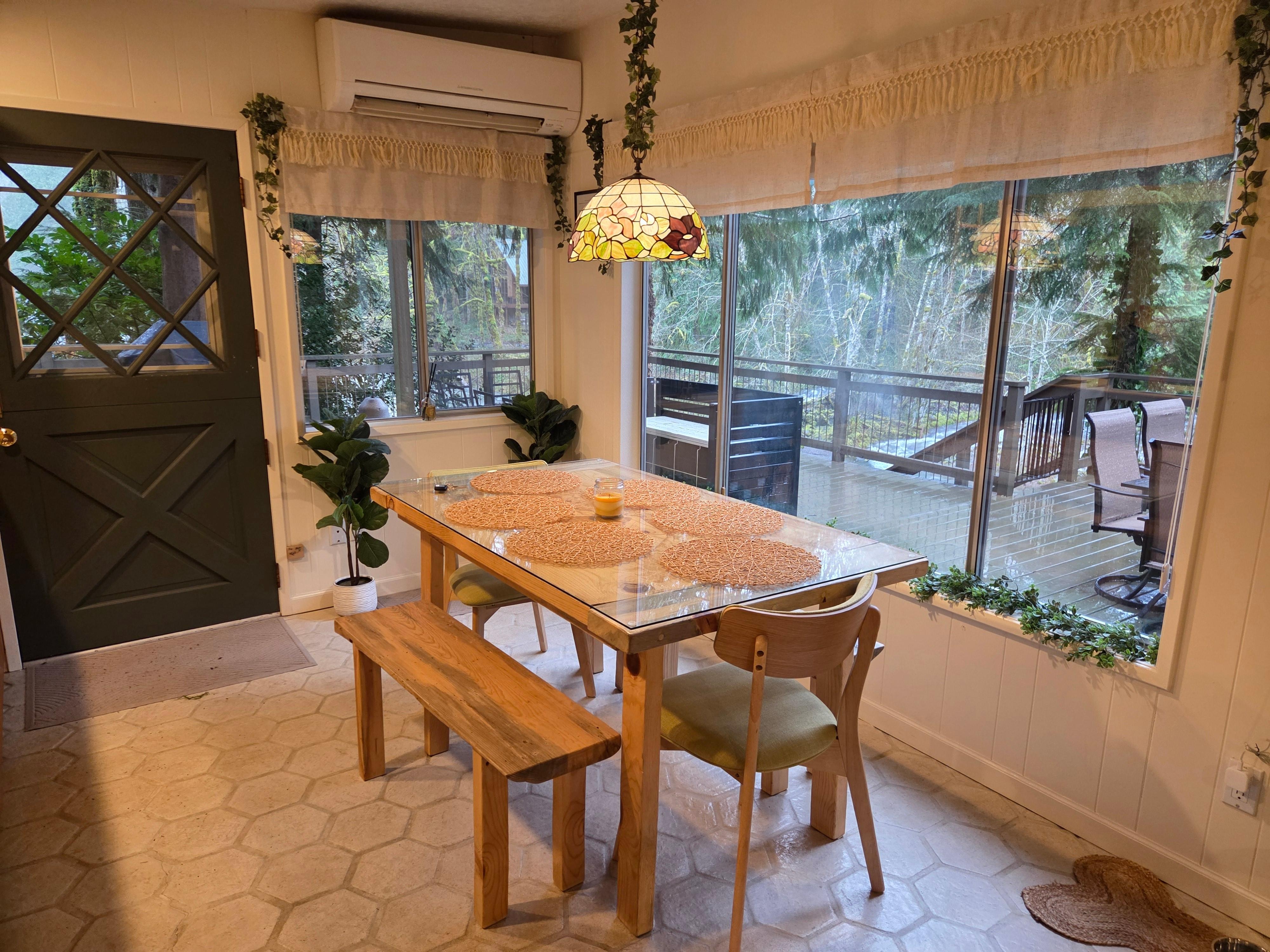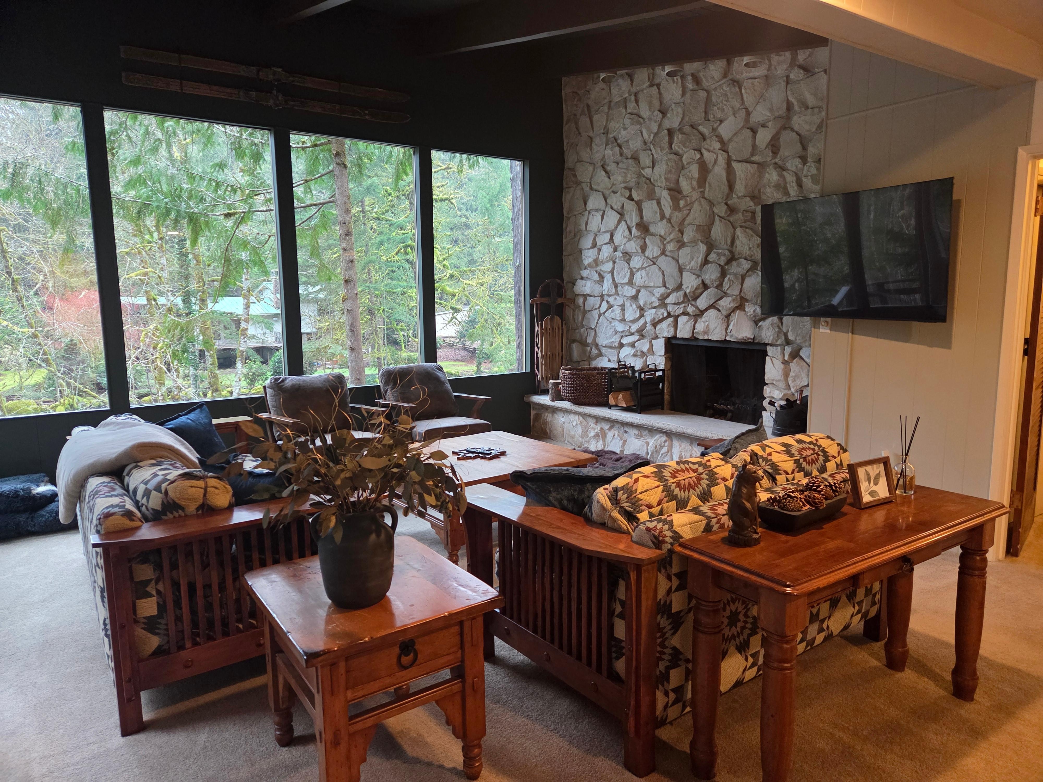 Welcome to Maple Leaf Cabin — a serene riverside retreat in the heart of the Mt. Hood forest.