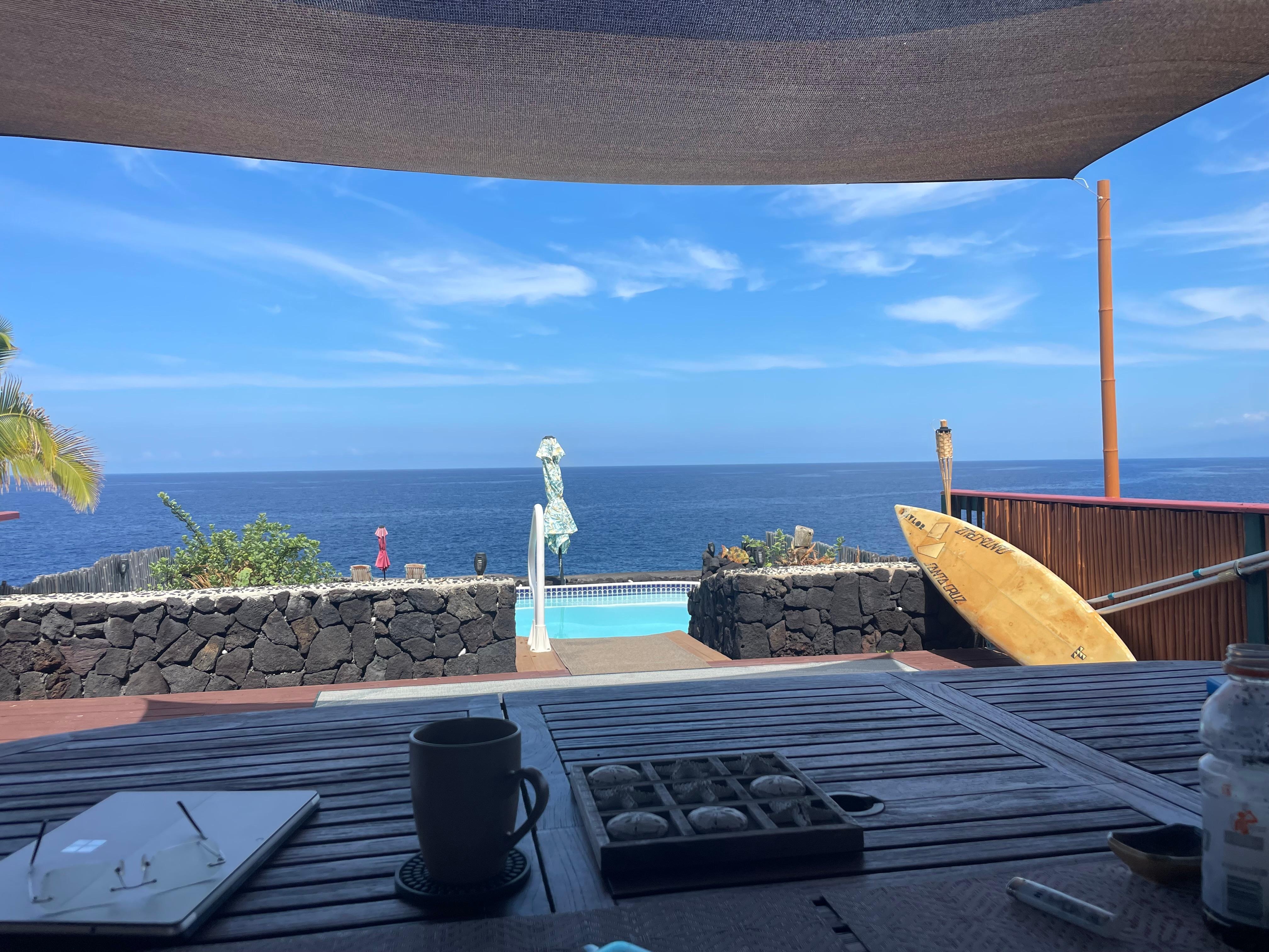 We had an amazing vacation at "Rick's Place" in Milolii Beach on the Big island. Dan is the best Host we have ever had, We arrived late and the doors were open with a beautiful breeze flowing through the house and lovely Hawaiian music playing. The house was so clean and the bed was very comfortable. Sleeping every night with the sound of crashing waves and gentle breezes was heavenly. Dan has everything one could need, The kitchen was stocked with supplies, dishwasher soap, tons of utensils and dishware and pots, pans, coffee makers...couldn't ask for more! We loved the pool and swan daily. Water was good temperature and pool very clean. Sitting out on the point that lead down from the home made for many sweet afternoons. The waves crashing up on the lava cliffs was spectacular. We wanted to avoid Resorts for a change and this was perfect. If you want complete peace, quiet and isolation this is your place.I also enjoyed those little geckos that wandered about with their beautiful colors. Friendly little creatures.We had many great adventures snorkeling and pods of dolphins swam alongside and under our boat trip to Captain Cook. The people were all so kind and helpful. I drove into the little village of Milolii and met some cool natives. Most important thing is to honor and respect the people and the island and in return you will be given such kindness. We enjoyed grilling fresh fish as Dan has a gas grill. Mahalo Dan! We will be back!
