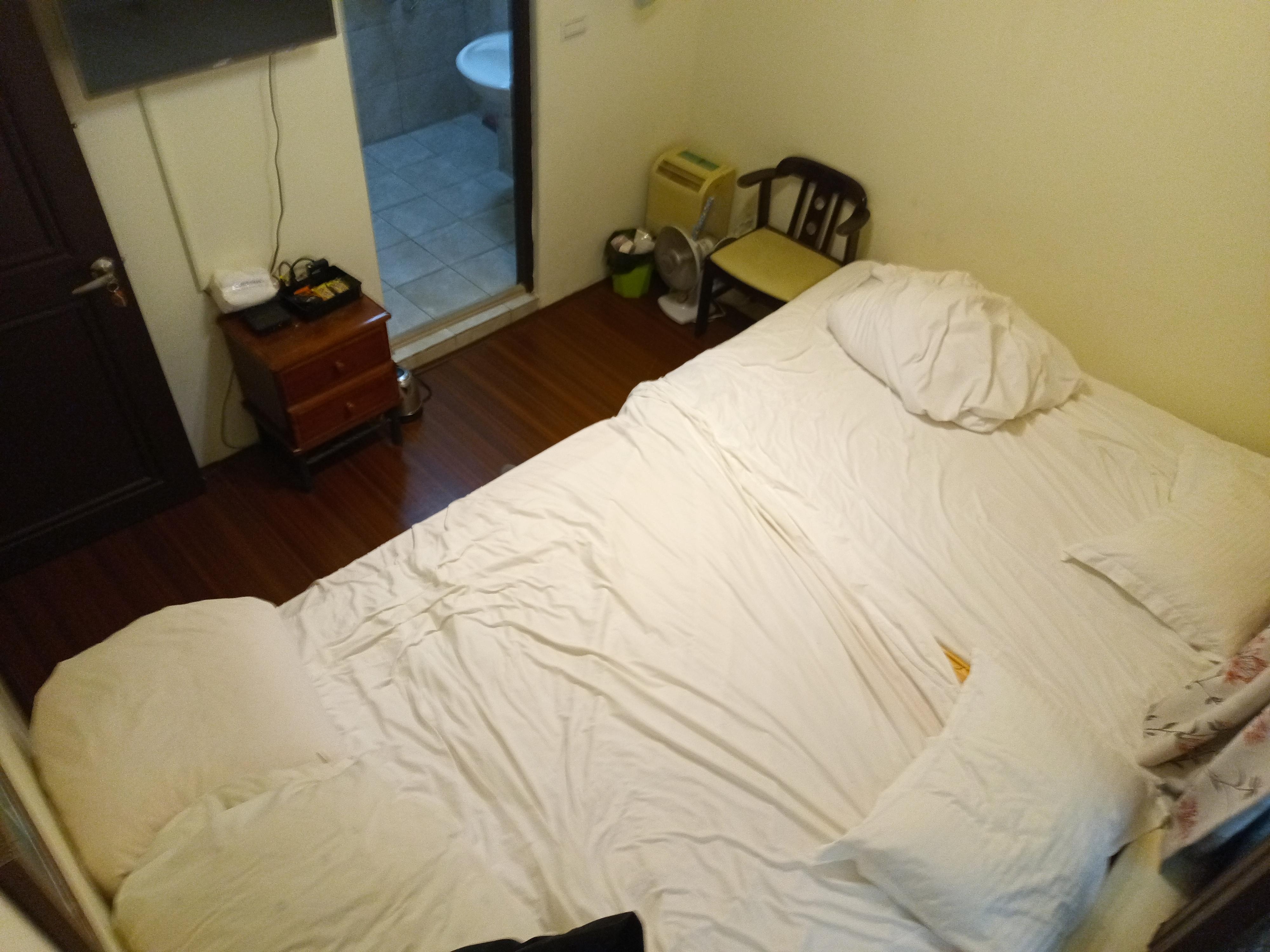 The room space is too small for 4 persons to have 4 luggage’s in room. There’s no table or chair in room. However, the bed and blanket is very comfortable for sleep.