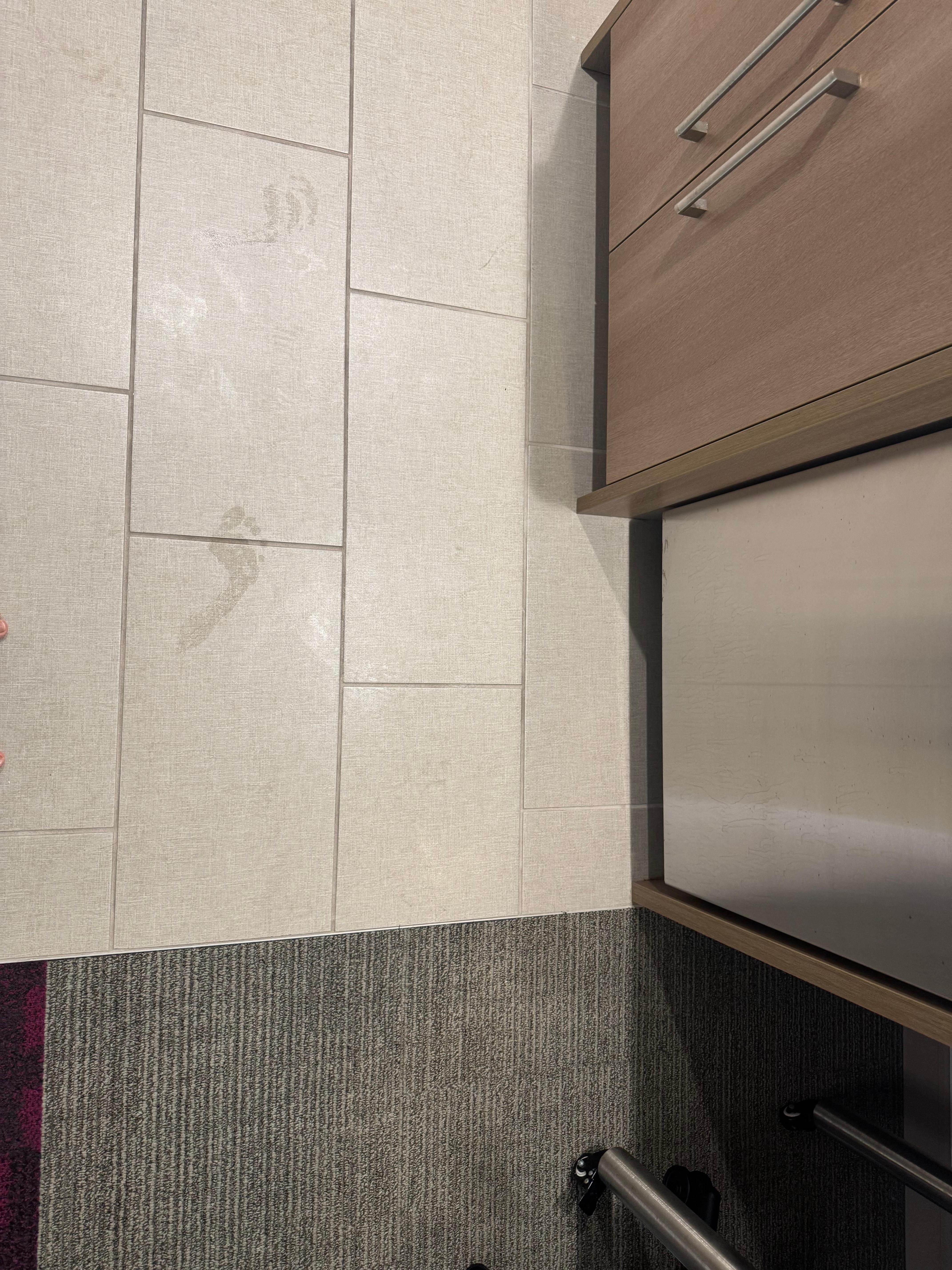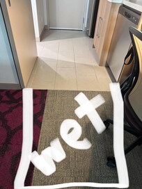 1 of 2 room booked had wet carpet from tile/kitchen area to the carpet area. Area 3x6 wet and soaked. Was not aware until I asked my daughter why her socks were dirty and then found out after I took my shoes off and walked through it and socks were drench. My daughter almost slipped with socks on going into the bathroom. Called service desk, no way to comp or switch room as they were fully over booked. Was told that maintenance will check the next morning. Spouse was not happy. Called service desk again, they brought up a fan and towels to lay over the wet area. I showed the service lady when towels were brought up - walked in the area, showed her how wet it is when stepping on tile. Pictures- you can see foot prints on the tile. Was told that it could possibly be spot cleaning and there was no time to dry. Nothing they could do so we just had to walk over towels and use the blower.