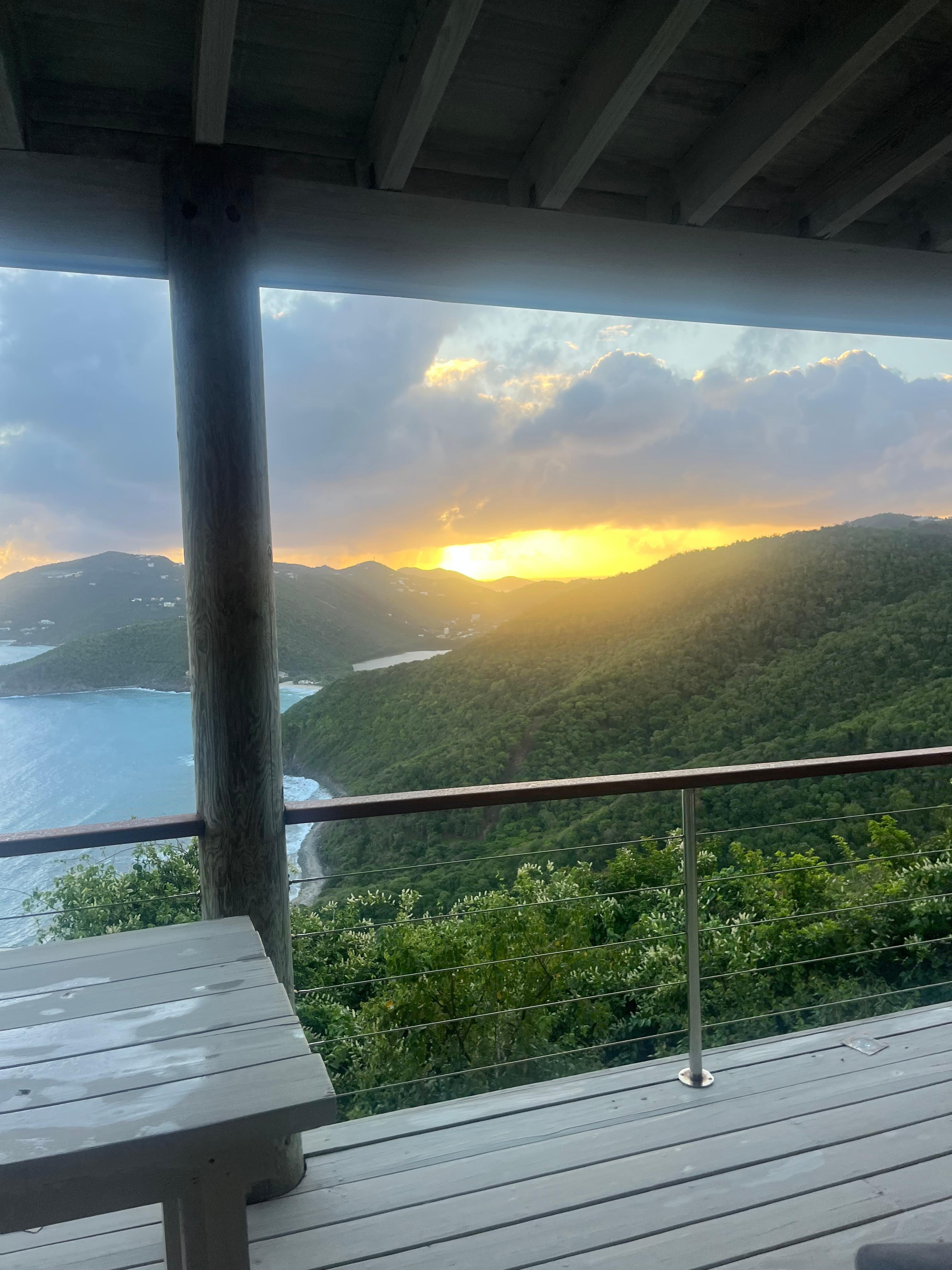 Amazing view and amazing breeze! And oh by the way, down the hill from the property is the best beach of all time! Sand on that beach is like walking on a cloud. Shared the beach with one other couple only half of the time we were on it. Clear water, decent size waves (end of May) vs other beaches with zero waves. But we ate dinner on the deck every night thanks to that breeze and view. Other parts of the island have stagnant air resulting in too much eat and mosquito problems. Not Cooten House!
