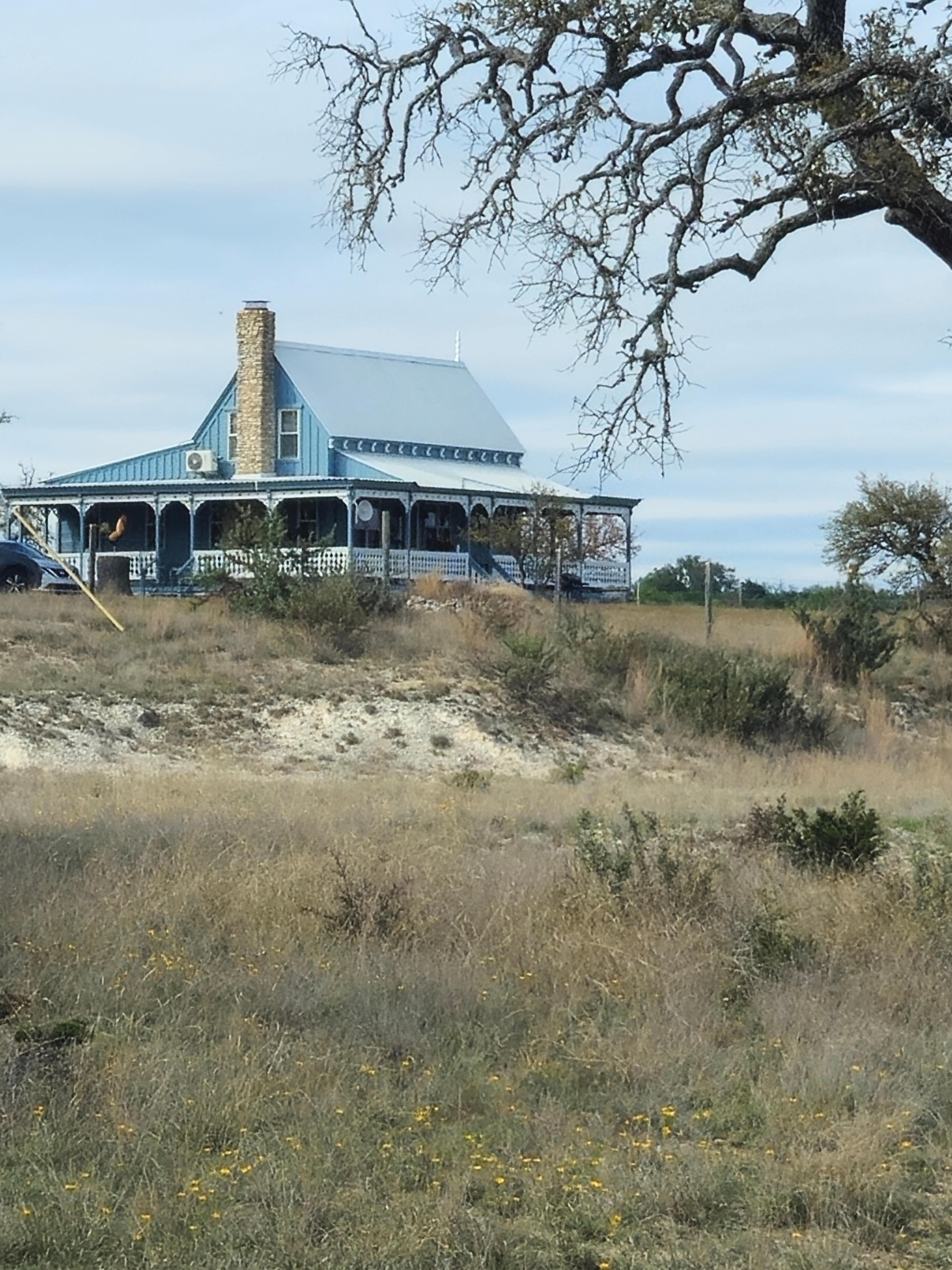 AMENITIES - 48” flat screen TV in living room, covered wrap around porch with rockers to enjoy hill country views, propane grill, picnic table, acreage to roam along designated walking areas of the ranch