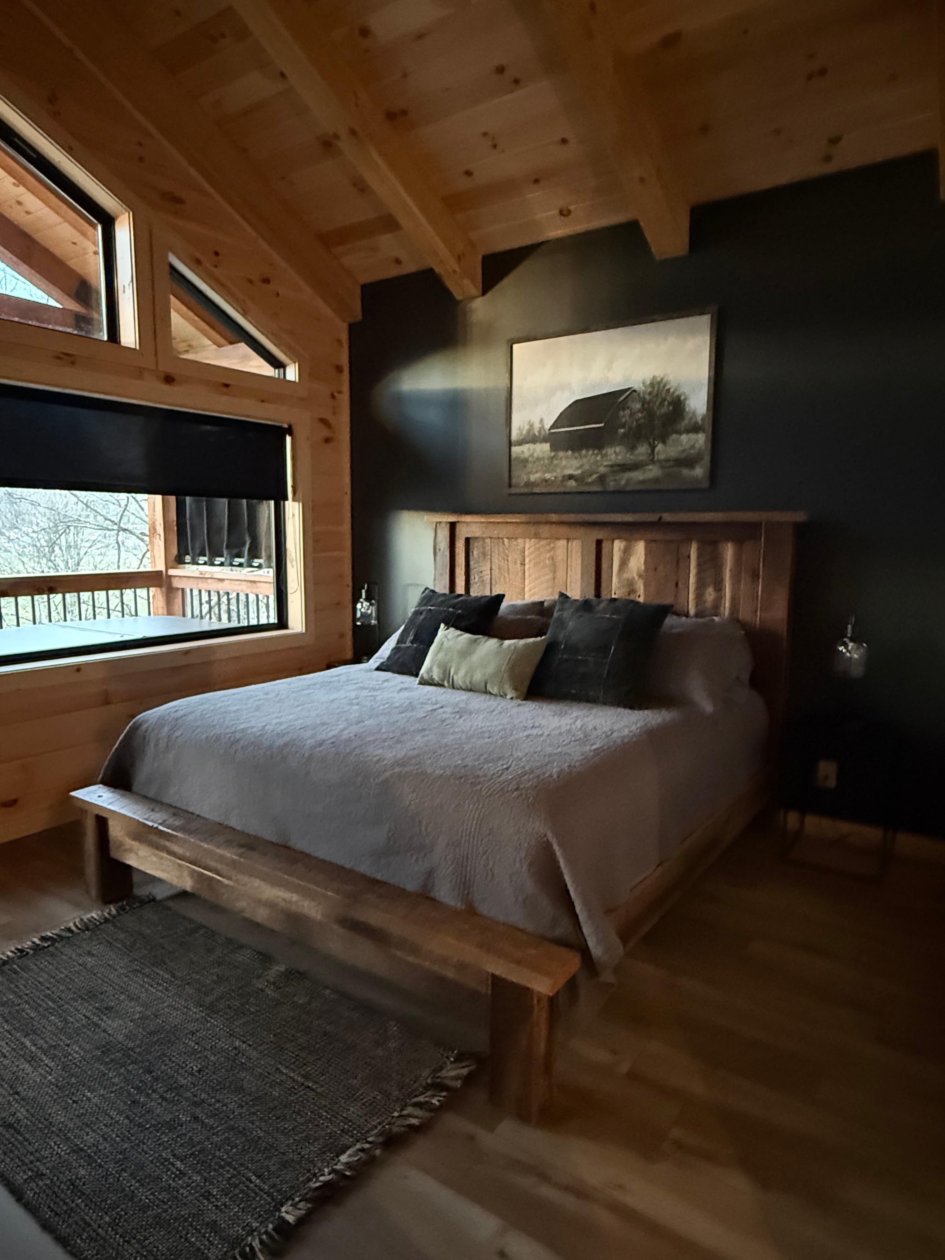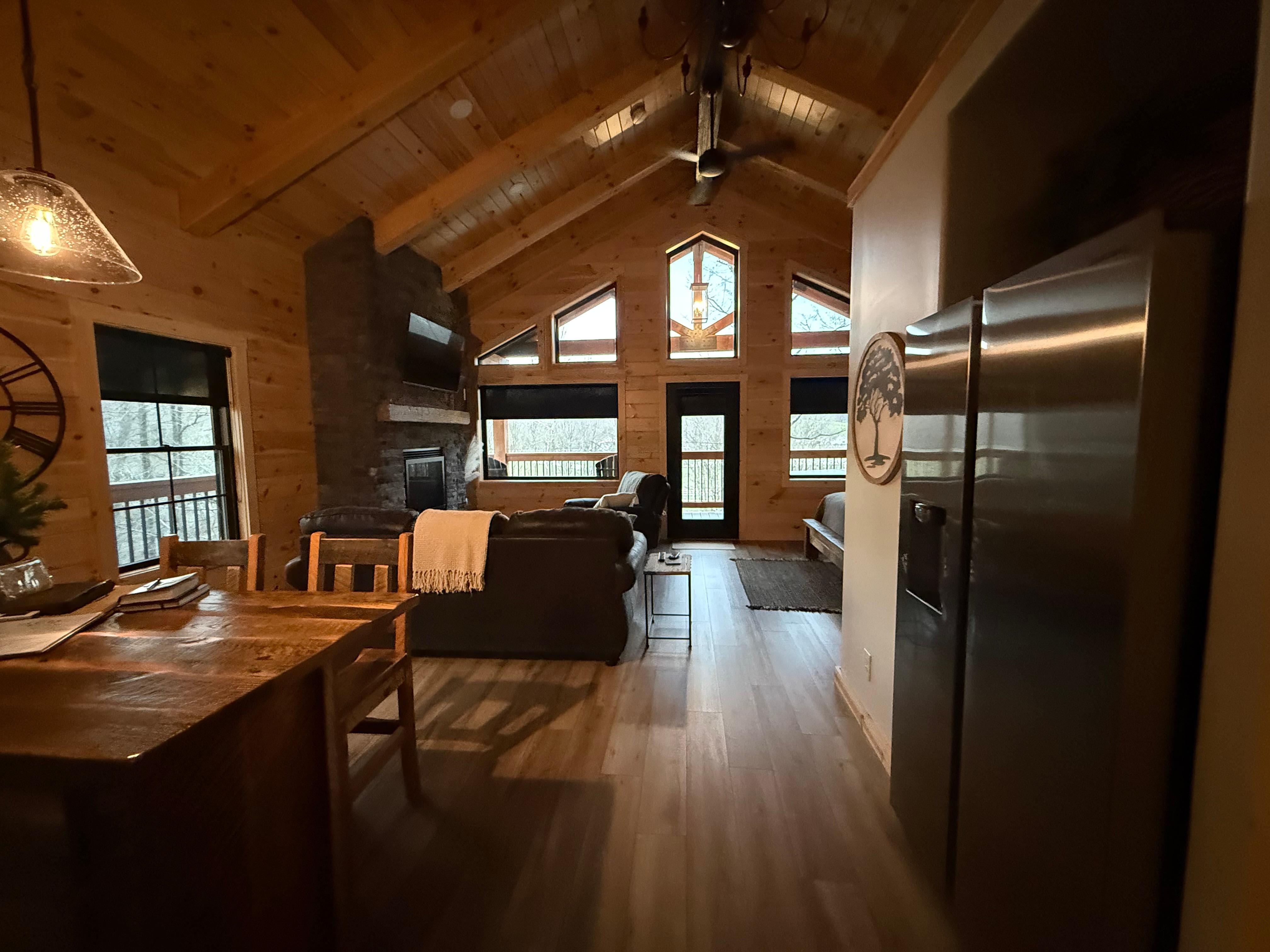 Stunning cabin with a scenic view! Tge entire cabin was spotless. Loved the 100 year old reclaimed barn wood cabinets and island. The bed was super comfy. Thr fireplace was cozy and the hottub was very relaxing. We enjoyed our trip and hope to return. The entire rental process was super easy and the owners were very responsive. Highly recommend!