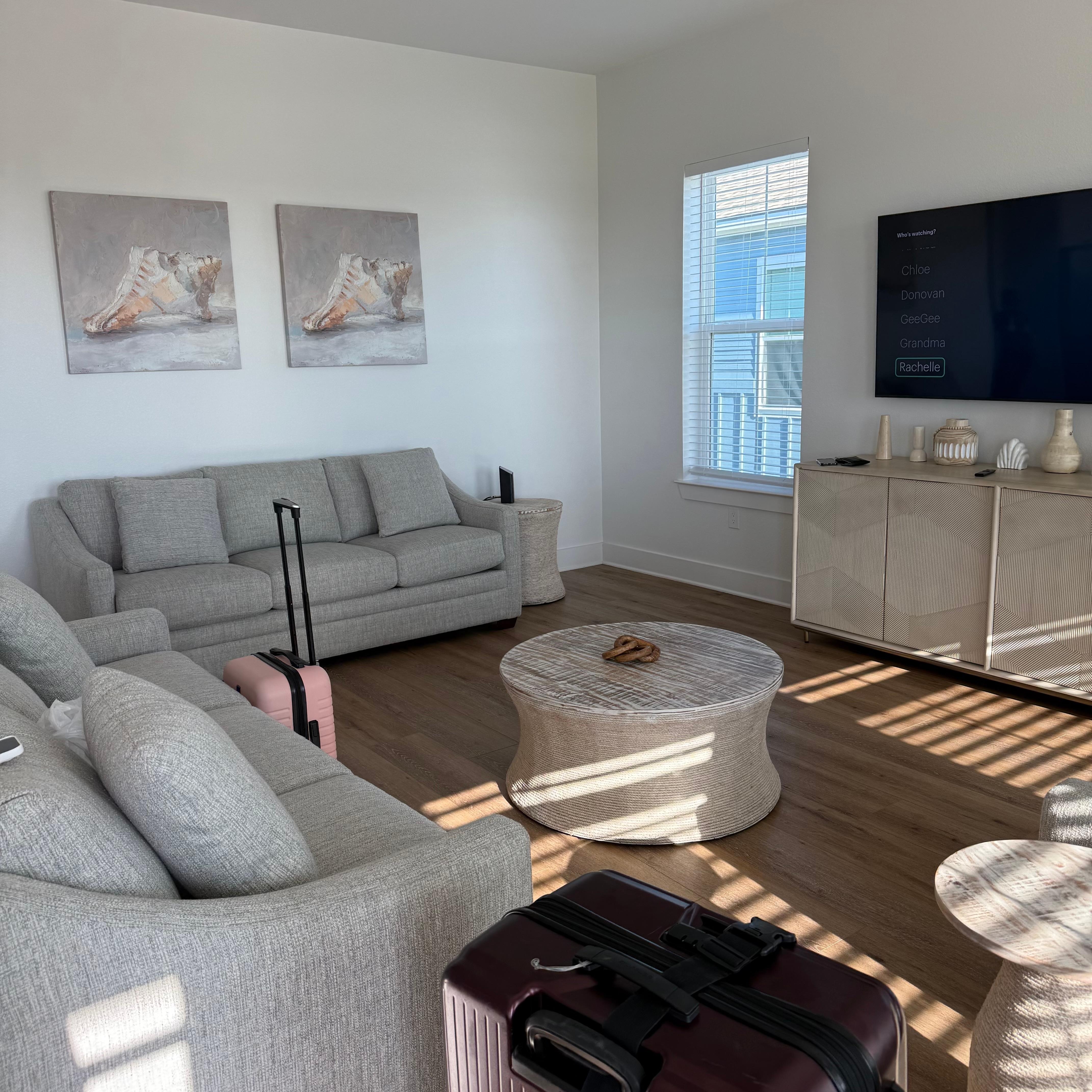 Each bedroom provides plenty of space to unwind, with fresh linens, storage, and smart TVs for streaming. Two full bathrooms ensure everyone has room to get ready, whether you’re heading out to the beach or preparing for a night on the town.