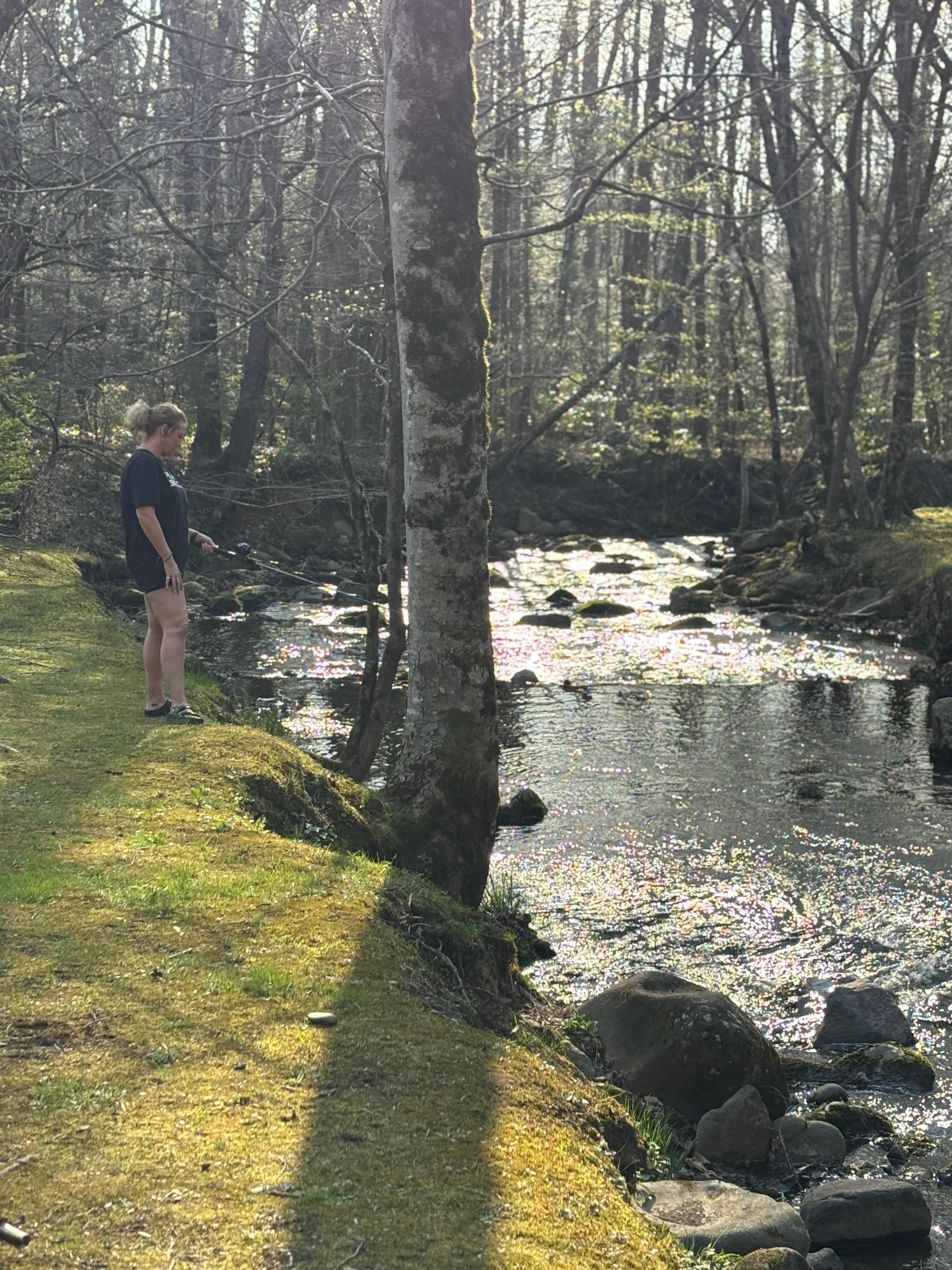 Creekside Oasis has everything you need to help you, your family and friends experience the most amazing stay. The cabin backs up to Webb Creek. The creek is stocked and fishing is permitted. The rule is 7 trout per line per day.