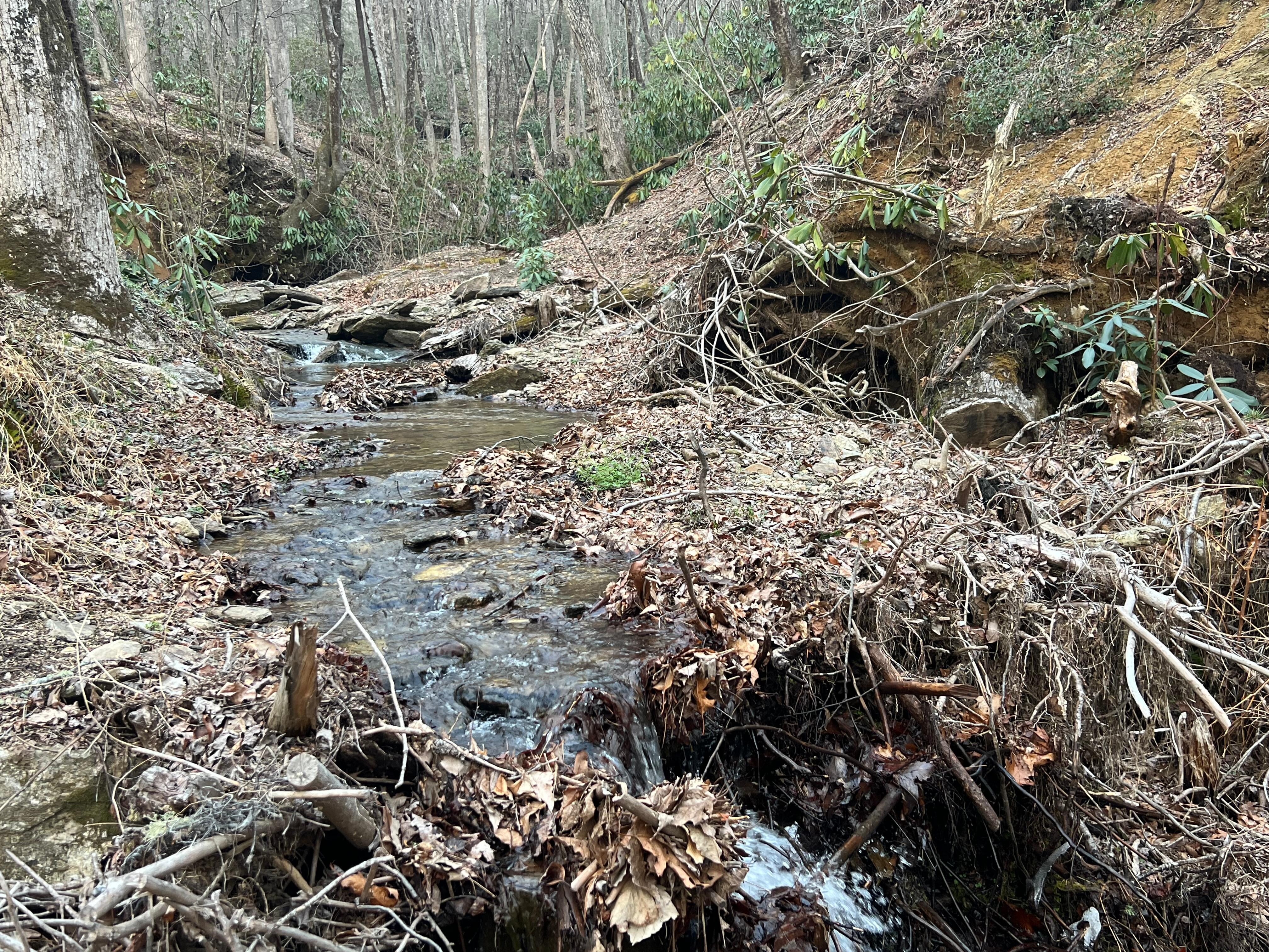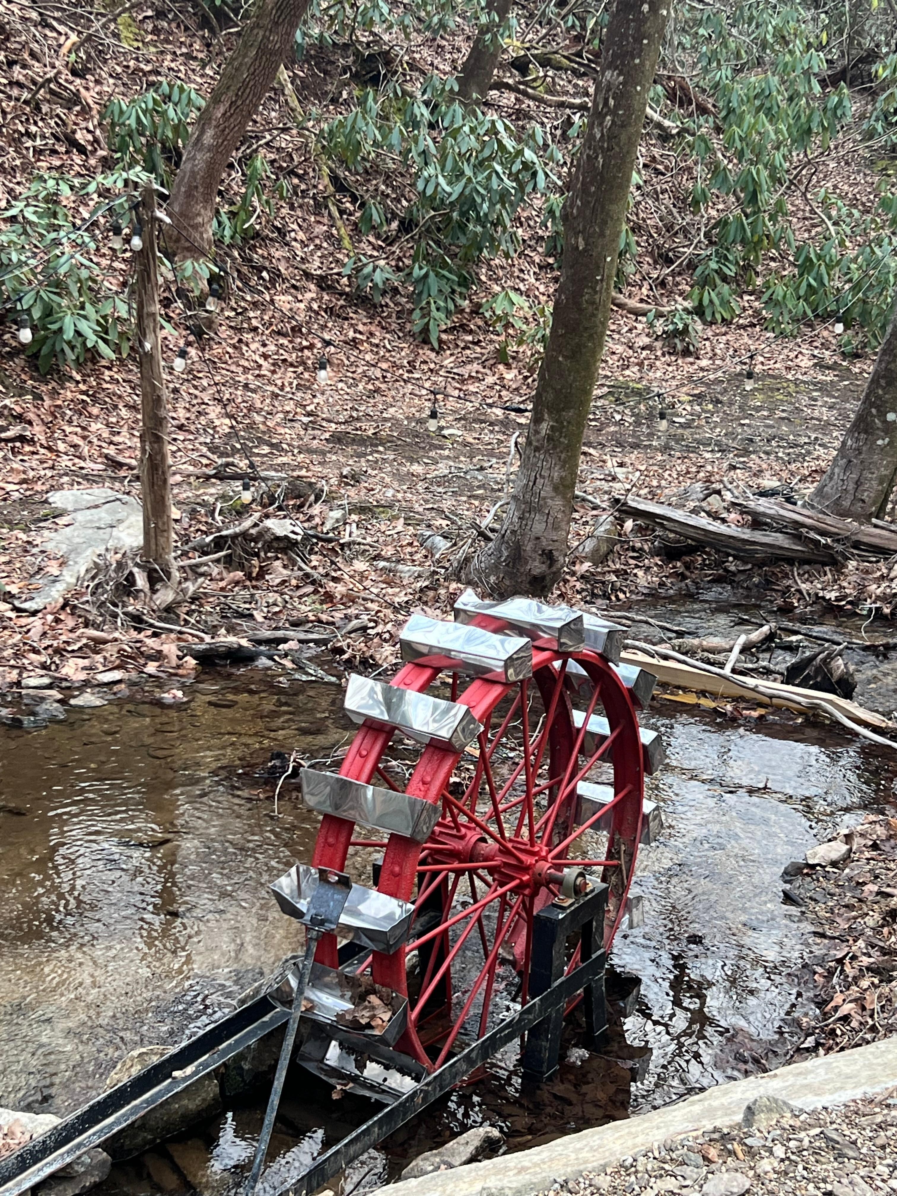 - Peaceful creek flowing behind the cabin while under the stars
