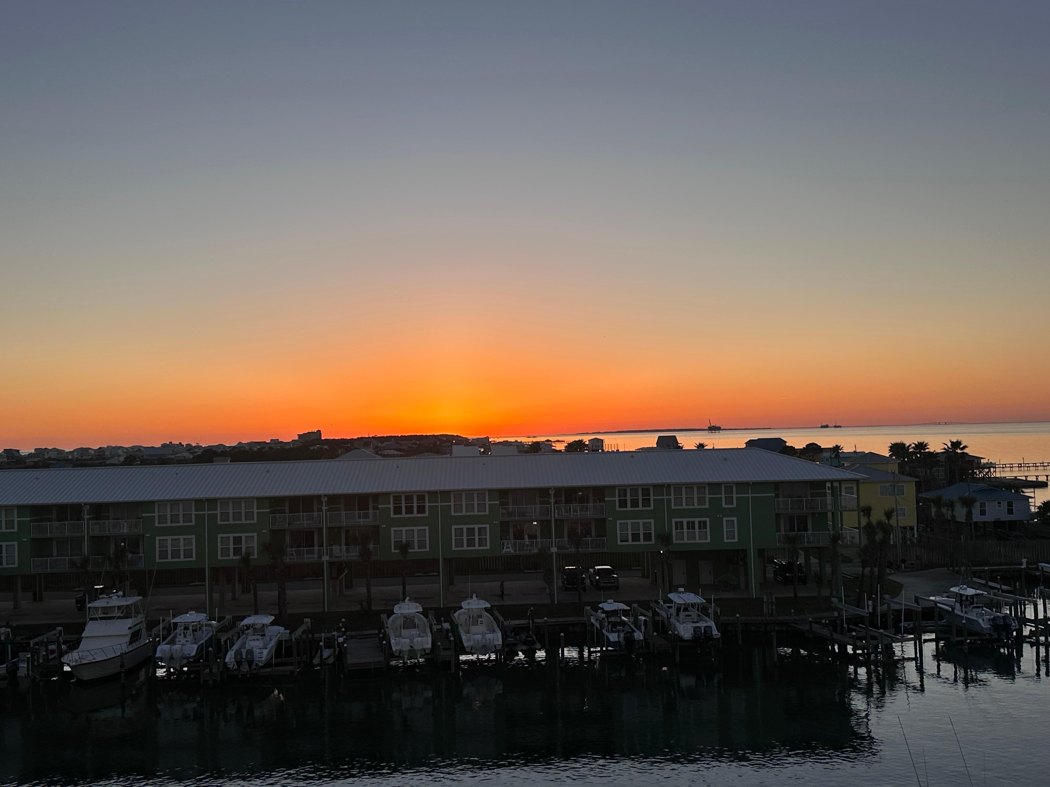 Kitchen has new appliances and the unit was repainted in 2022. Master bedroom is large enough to stretch out (225 sq. ft.) with views overlooking the harbor and Mobile Bay. The master bathroom has a standup shower and Jacuzzi tub. A new shower was installed in the main bathroom in 2022. The second bedroom isn't small at 168 sq. ft. with views of the hallway (sorry.)