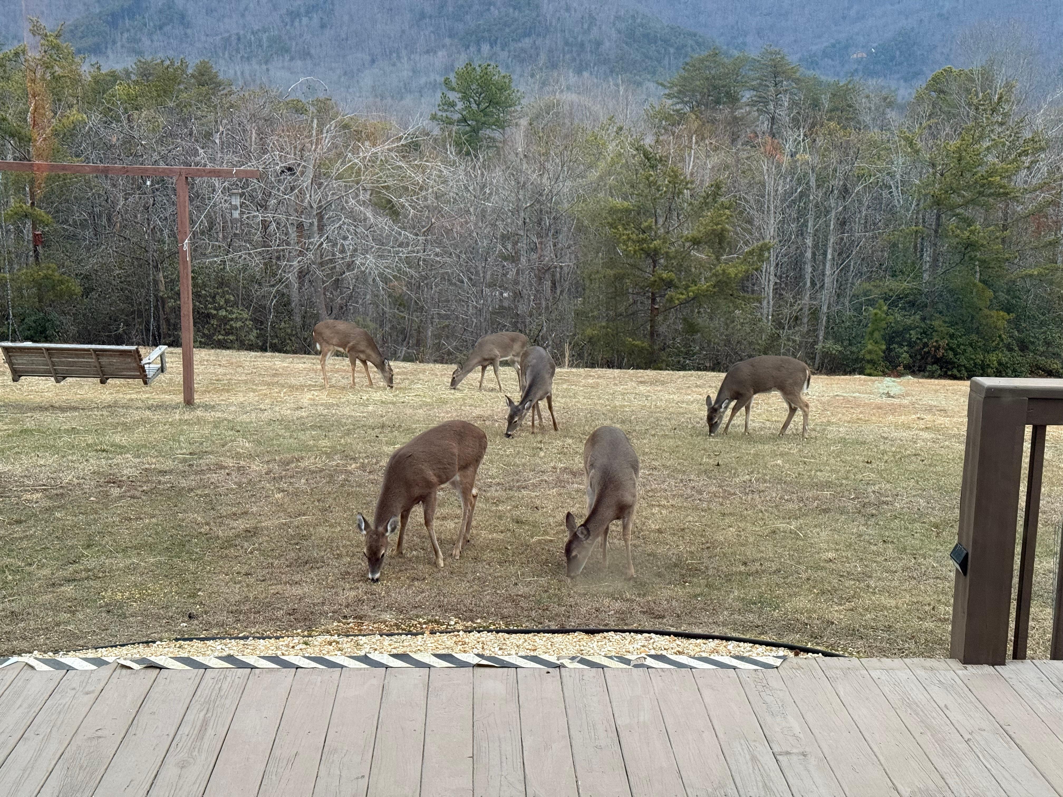 Gorgeous mountain views are only one part of this beautiful mountain getaway. This cabin features a great living area with hardwood floors throughout and a loft area upstairs with a pool table, game table, and a private washer/dryer. Outside, enjoy a full-length covered porch with rocking chairs from which to enjoy the views. There is also a gas grill to prepare food and a firepit to eat around when the sun goes down. Or pick out one of the picnic tables - it's like relaxing in your very own park!