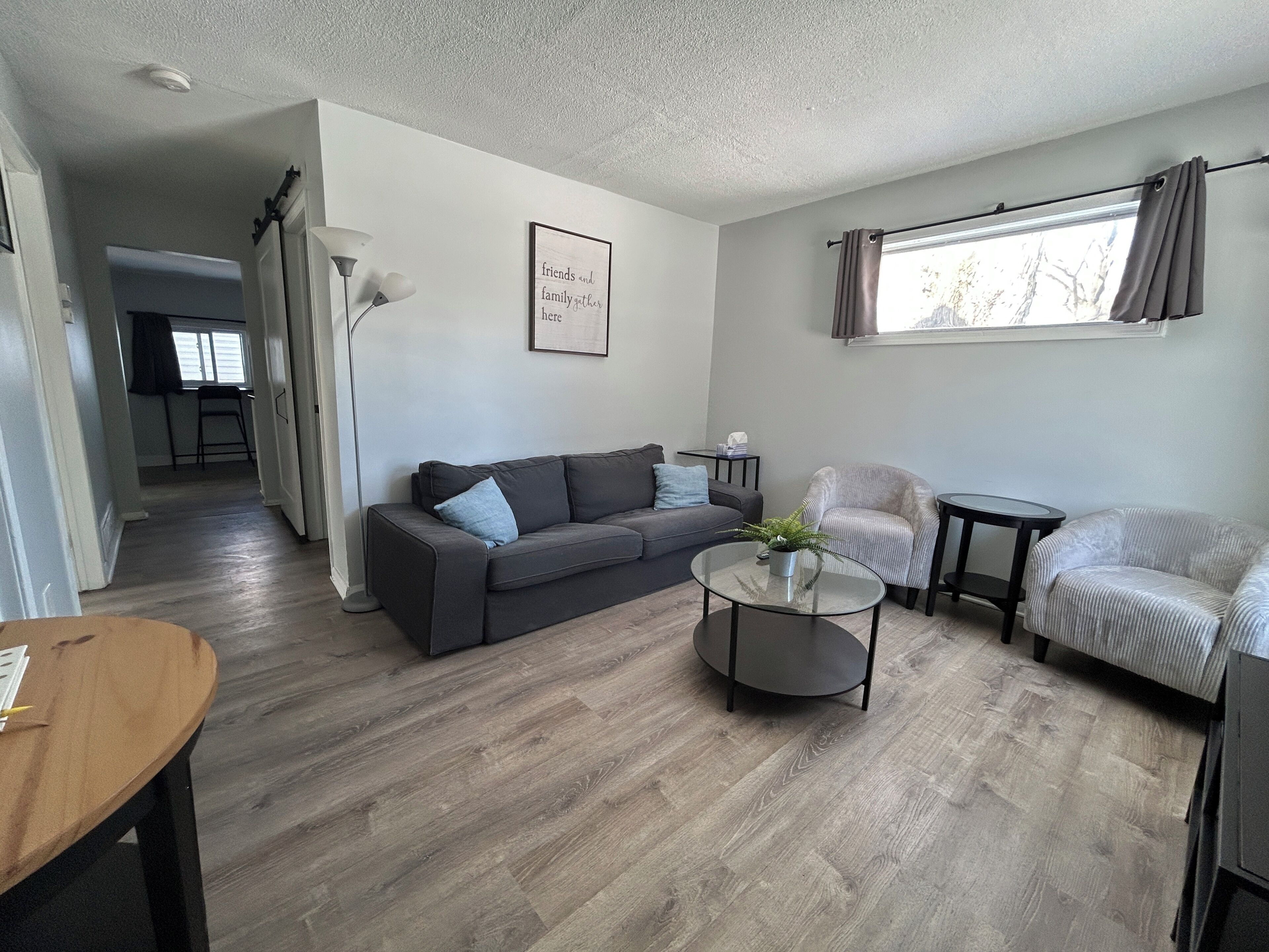 Spacious Living Area: The living room is beautifully furnished, providing a cozy space to relax with family and friends. The living room also includes a pullout sofa for extra sleeping space. Enjoy movie nights on the flat-screen TV, where you can log into your personal streaming apps, as we do not provide cable.