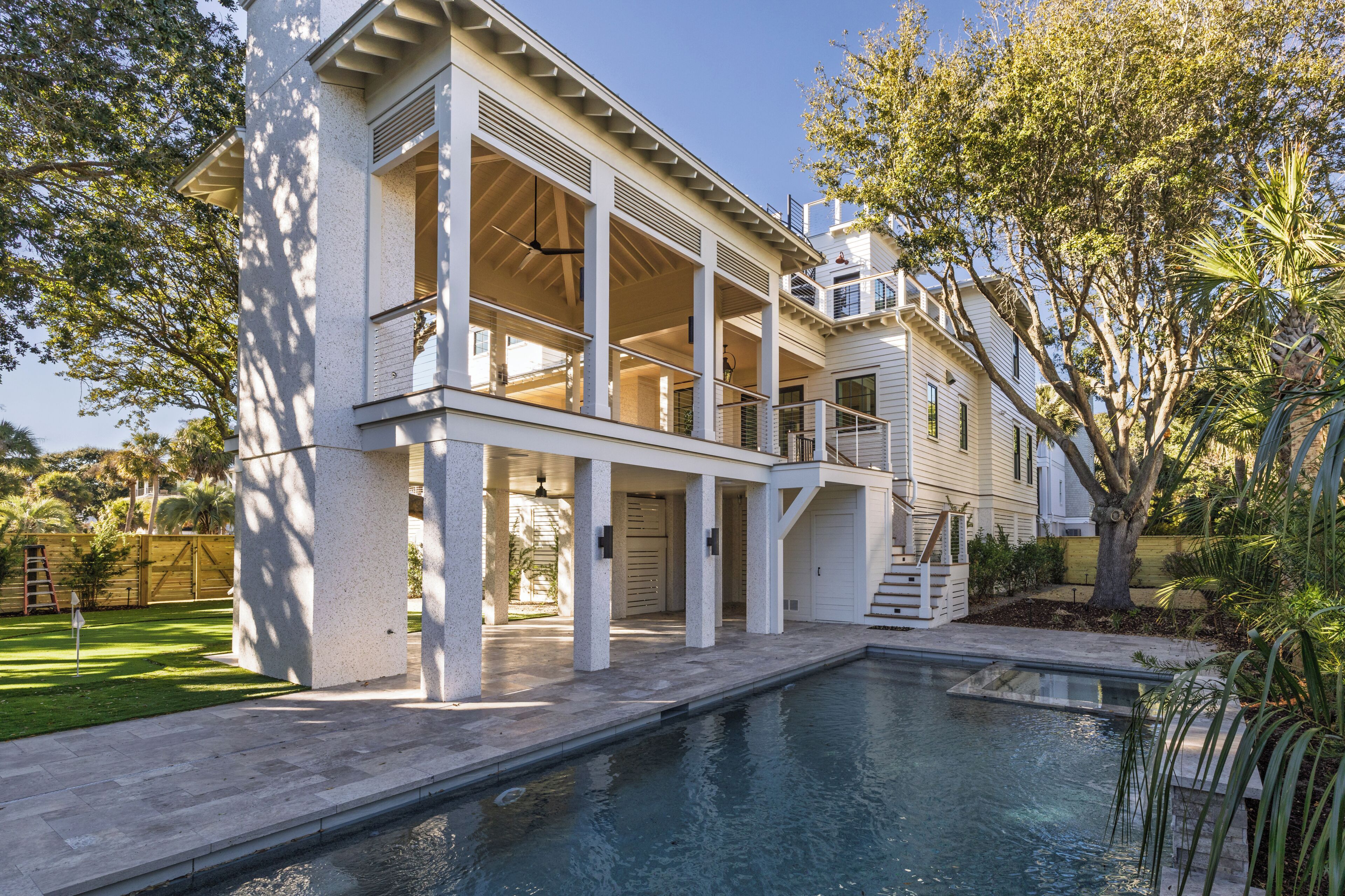 Experience island living in this stunning two-story, 3,025 sq. ft. home located just a brief walk from the beach. With elegant interiors and multiple outdoor lounges, this retreat is perfect for families and groups. ________________________________________ Bedroom Layout 4 Bedrooms | 4.5 Bathrooms | Sleeps 8 • King Bedroom • Queen Bedroom • Queen Bedroom • Queen Bedroom ________________________________________ Kitchen and Living Areas • Spacious gourmet kitchen • High-end appliances • A stylish lounge area • In-home laundry, central AC, and Wi-Fi ________________________________________ Outdoor Living • Private hot tub with sun loungers • Al fresco dining area • Multiple balconies for relaxing • Short 10 -minute walk to the beach ________________________________________ More Information • Outdoor shower and bathroom • Parks 4 cars • Personal putting green • TVs with standard cable • No pets allowed ________________________________________ Resort Access Included Full access to Wild Dunes Resort amenities: • 36 holes of Tom Fazio-designed golf • Tennis and pickleball courts • Pools, cabanas, and hot tubs • Full-service spa and nail salon • Beach rentals: chairs, umbrellas, kayaks, paddle boards • Nine resort dining venues • Bike rentals, eco tours, and fishing charters • State-of-the-art fitness center • On-resort shuttle service • Signature Wild Dunes resort programming ________________________________________ Walkable Distances • Beach: 10 mins • Sweetgrass Plaza and Spa: 5 mins • Grand Pavilion Pools: 10 mins • Boardwalk Inn and Dining: 7 mins • Harbor Golf Course and Tennis/Pickleball Center: 5 mins • Links Golf Course: 15 mins ________________________________________ Professionally managed by CoralTree Residence Collection