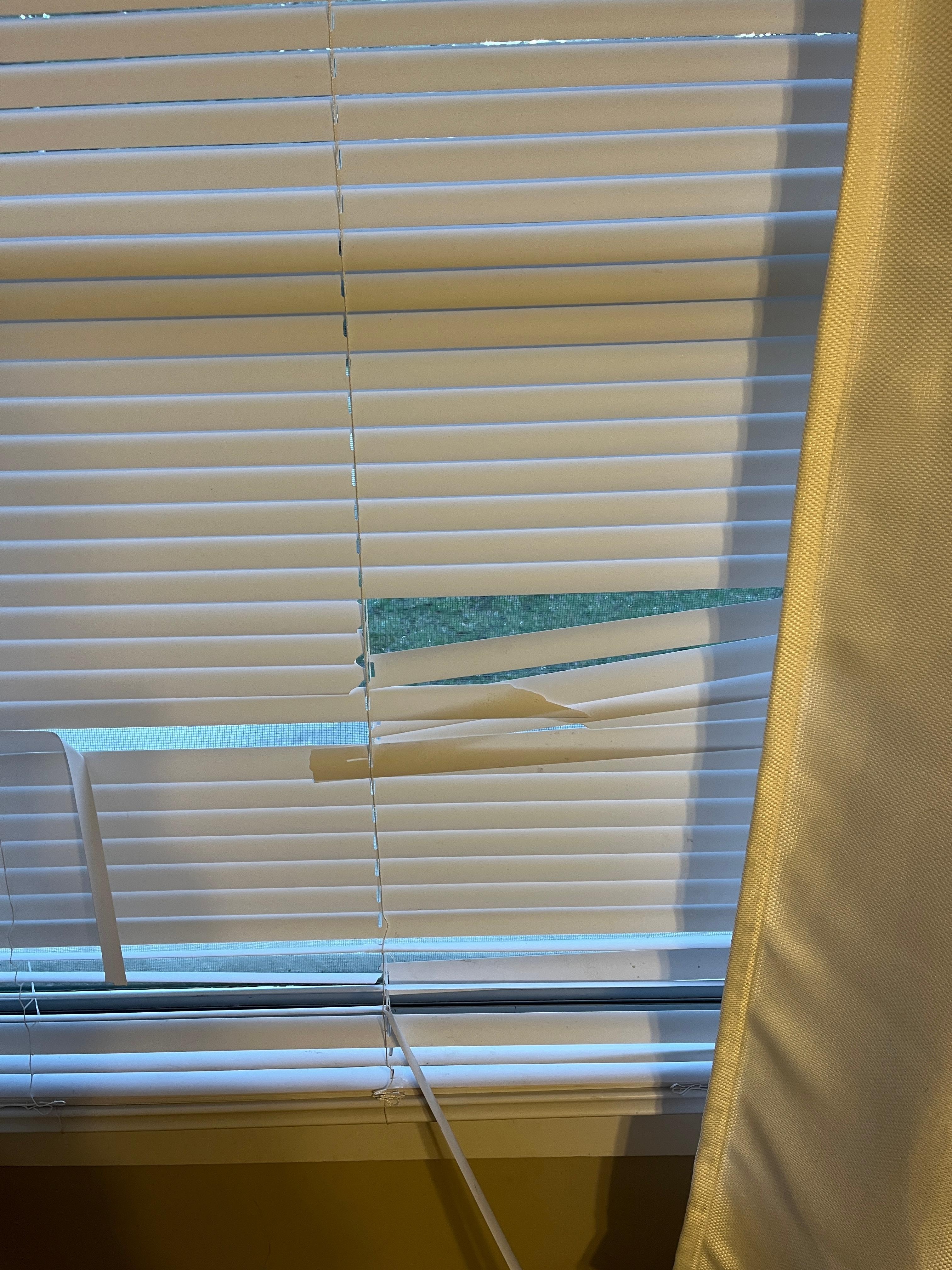 broken and filthy blinds and curtains