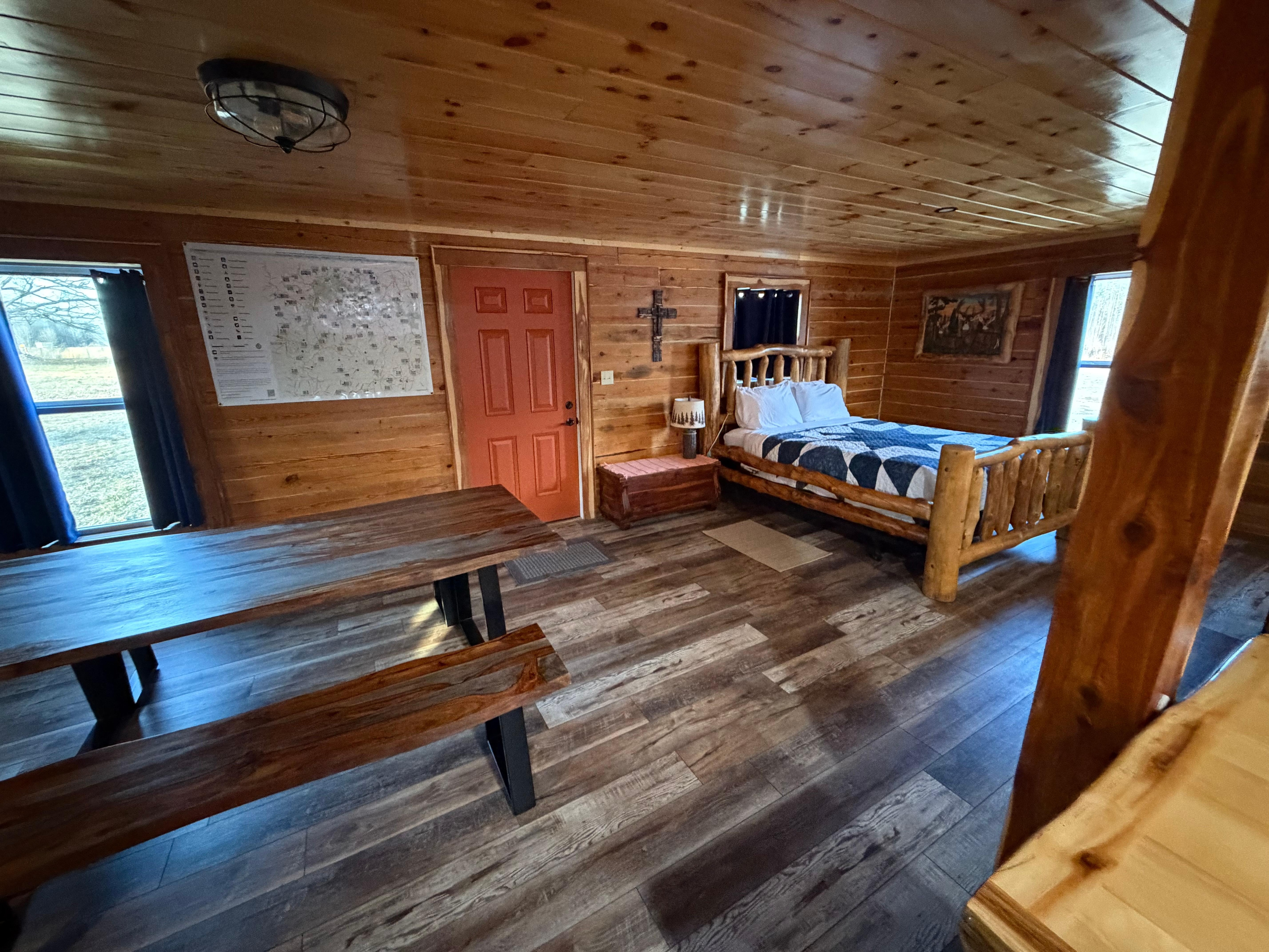 Three Oaks Cabin is a guest favorite! Free Wifi and no charge for cleaning, unlike most vacation rentals in the Jasper area. Base price of $125 per night is for 2 people. This family-friendly log cabin is part of the former Buffalo River Hunting Club, situated approximately halfway between downtown Jasper, Arkansas and the Hasty Landing Cutoff. Extremely accessible for motorcyclists; it sits right on Highway 74E! Great for church retreats too - you will feel like you have stepped back in time when seeing the original log walls, yet have all the modern-day amenities that will be part of your stay. (No animals allowed).