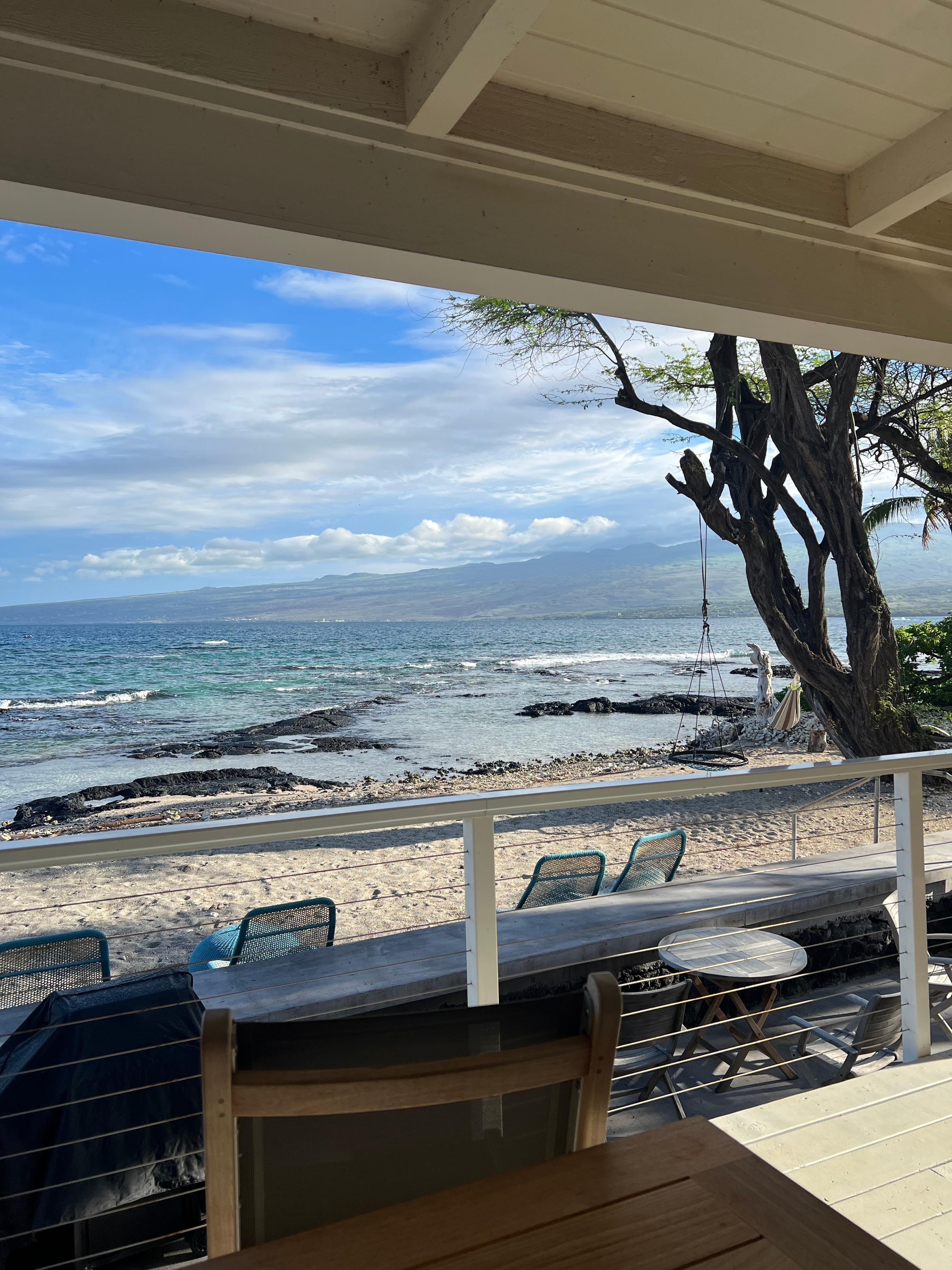 Every day we woke up to the sound of crashing waves, strolled through the clean house with its tasteful beach-inspired design, and headed to the beautiful sliding doors onto the spacious lanai facing the ocean, coffee in hand (using one of her cute seahorse mugs). Settling into the comfy swinging daybed, I rocked while watching the whales wave good morning to me.Extra points for snorkeling gear and beach towels. The kitchen was really well appointed with ample stemware, utensils, serving platters and dishes! It was better than we could have hoped for. 10/10 would recommend.