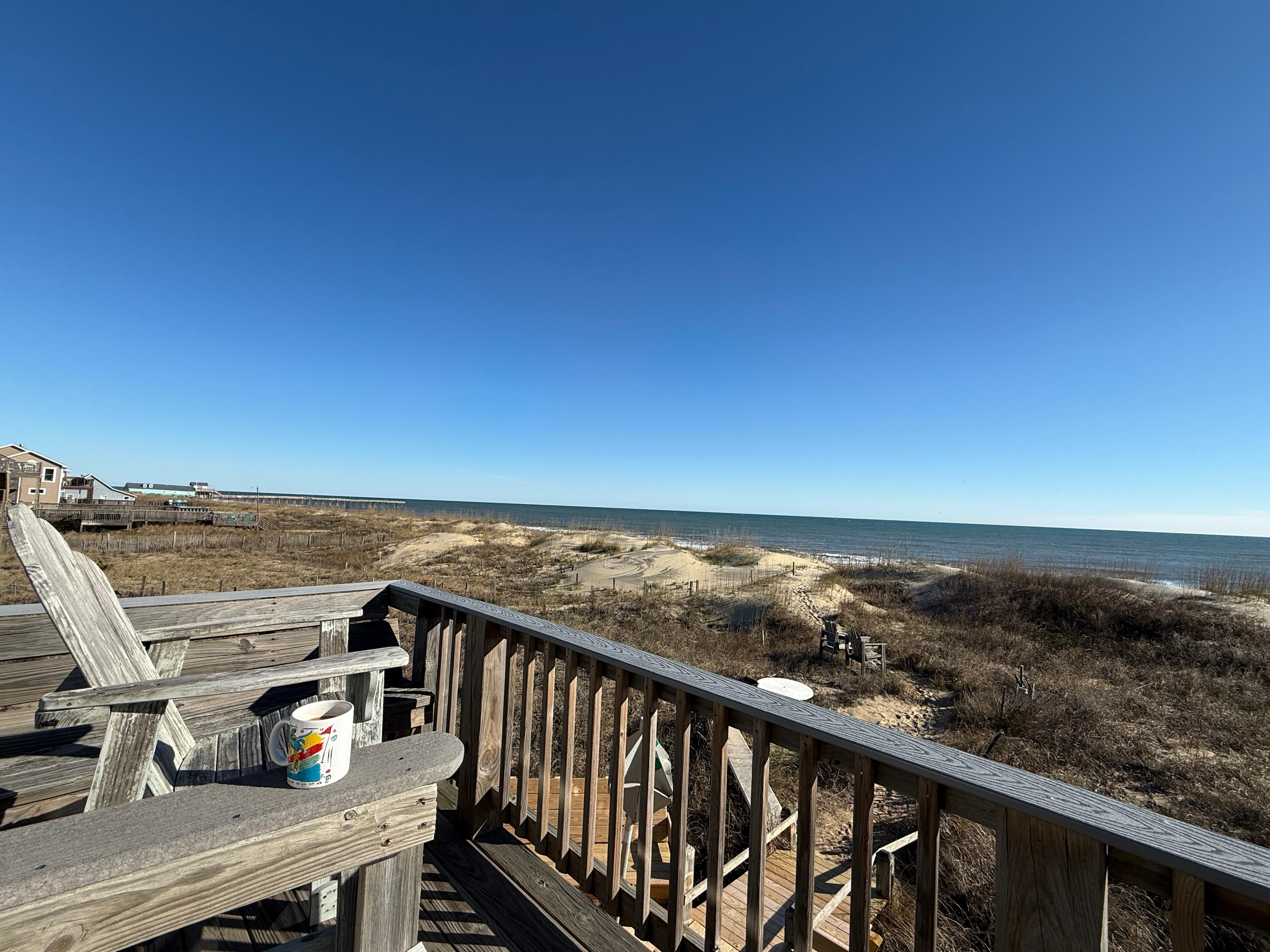 The location is perfect, on the beach, stepped back in the dune for protection, walking distance to great restaurants and movie theater. Wright Brothers Memorial a mile away and Avalon Pier is a short walk. Bring your bikes with NC12 at your backdoor and great bike trails you can bike to many attractions. Nags Head is a few miles away and Jockeys Ridge is the same. Once your at Timeless Retreat you may never want to leave! However, if you want to go for a one of a kind Dune Front drive head down to Hatteras for the day and walk to the top of Buxton Light House. If you have a 4 wheel drive vehicle head north and spend the day in Carova with the wild horses. Want to shop the outlet mall cruise down NC12 and cross over Croatan Highway for best shopping. There are endless restaurants within a few miles from Yankee Retreat. This is the perfect location for all your summer dreams. Out of the traffic problems of Duck and Corolla and in to the beauty of the beach and majestic sunrises. Make it yours and book today!