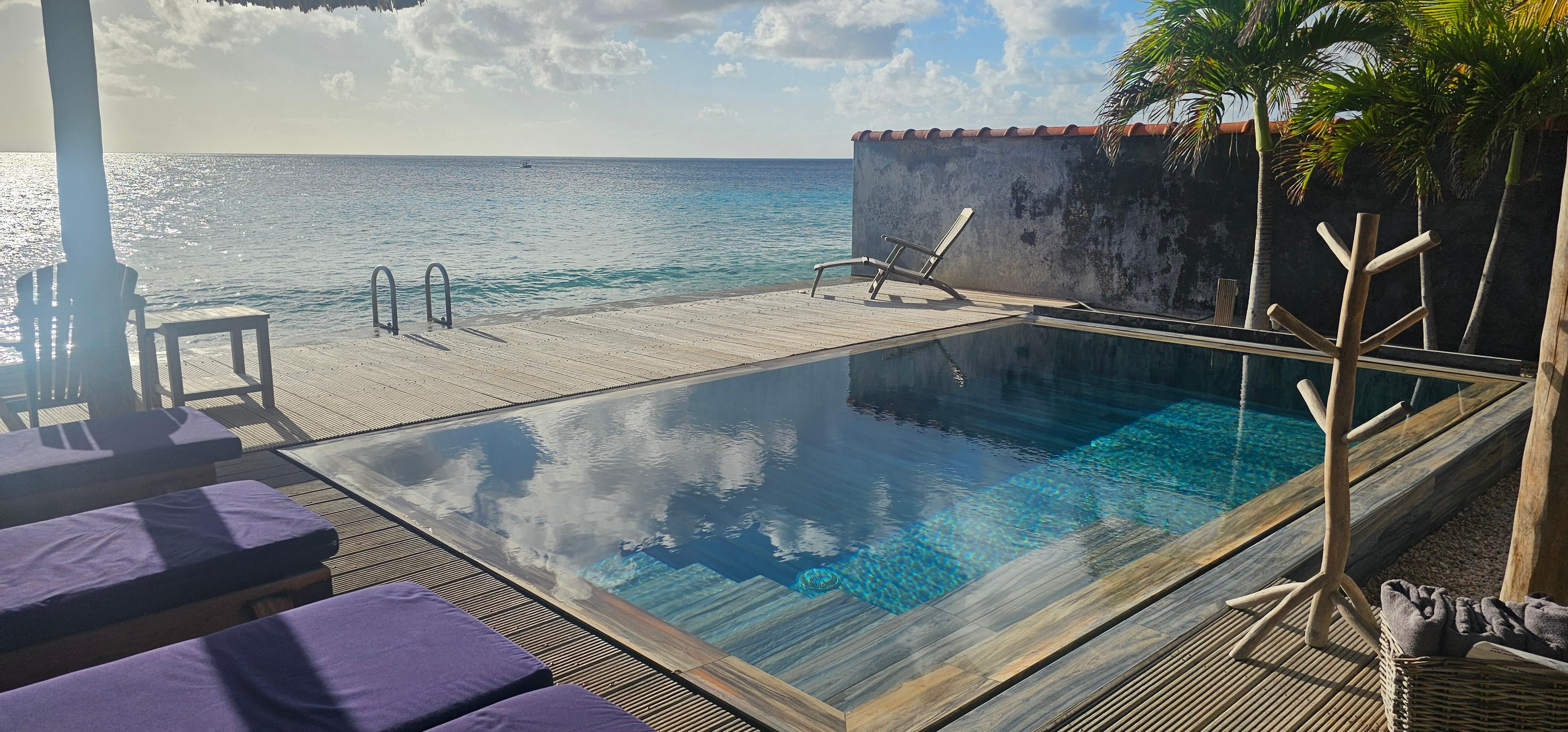 Perfect Oceanfront Bonaire Villa 🧜!!For our girls trip of 4, the villa and hospitality could not be beat! From the booking process all the way to the departure airport drop, all was 5 . Gorgeous modern villa with outstanding ocean views . Each suite had air conditioning and the breeze kept the rest of the villa very comfortable. The pool was Amazing and we had all sorts of welcoming sea life in view from the sea turtles, flying flamingos, pelicans, amongst others :). The Location was just perfect amd near to everything. The hosts were so great and helped make our girls trip just fabulous.The truck rental is an added bonus! From all our trips- Bonaire has won our s and we will be back next year!
