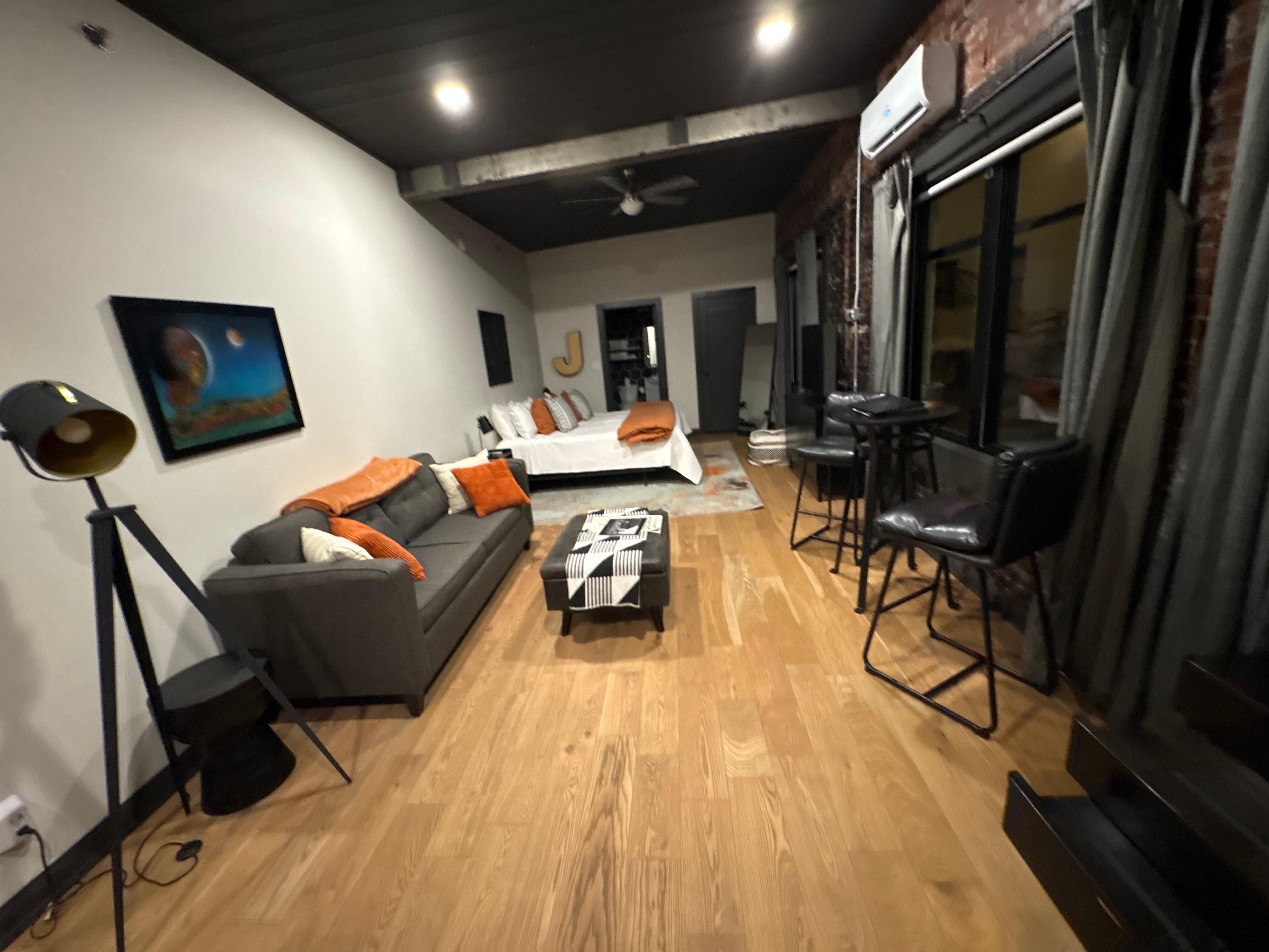Welcome to The Jackson! This newly renovated spacious studio is one of our fan favorites. You will enjoy lots of natural light and room access to the outdoor courtyard. This open space has a living, kitchen, dining area, king bed, and sofa sleeper. With a fully equipped kitchenette, you can cook a quick meal or walk outside & enjoy the easy access to the city's shopping, dining, & entertainment venues. We think you will love the Jackson in the Historic Alexander Hotel. #leitchfield #kentucky