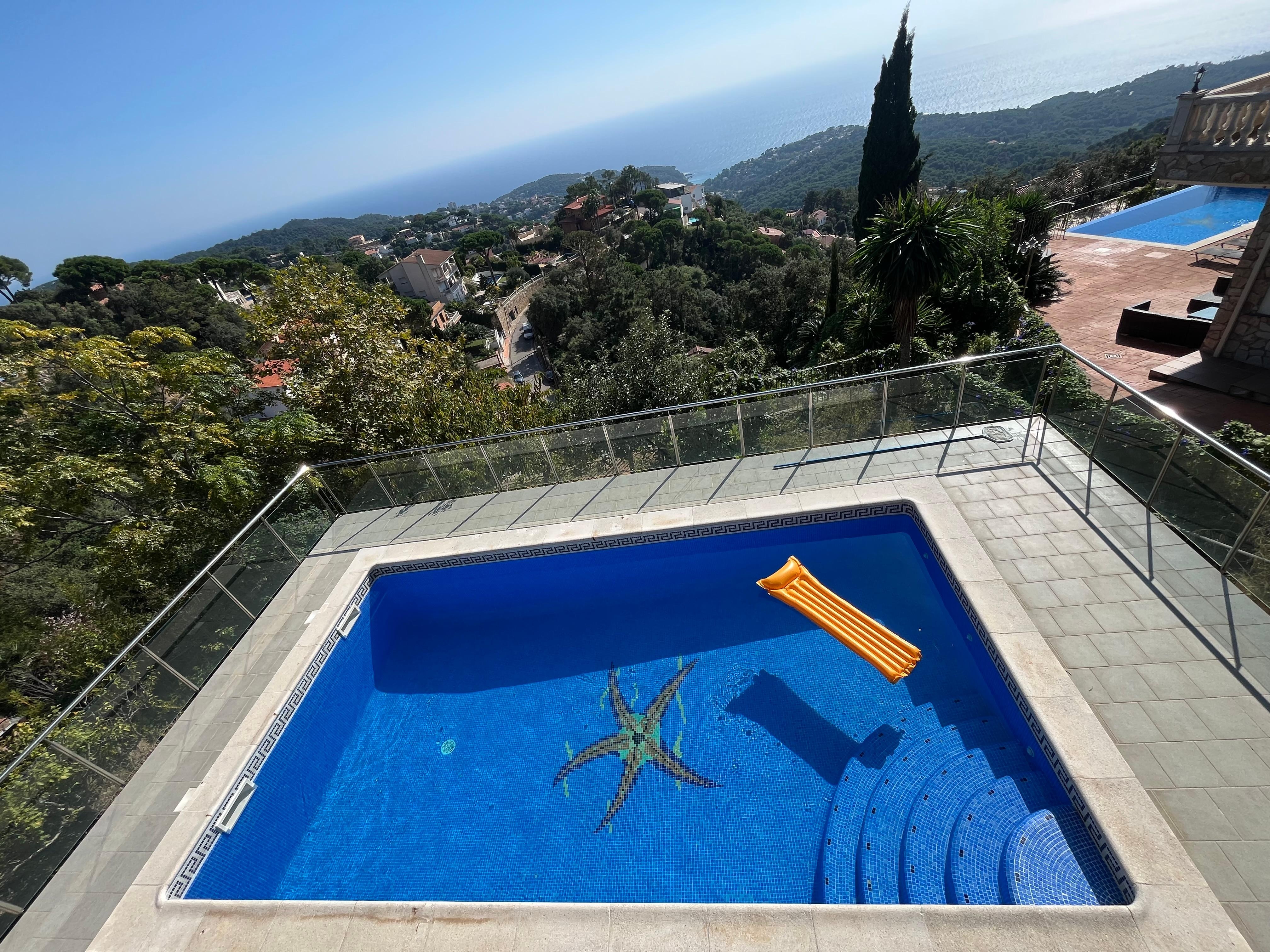 House with private pool and beautiful sea views, situated in a quiet residential area only 5km from the beautiful and quiet beach of Canyelles, 6km from Lloret del Mar town centre and 7km from Tossa del Mar, one of the most charming towns on the Costa Brava. This property is ideal for enjoying family holidays on the Costa Brava! There is an outdoor area of 700m2 with private pool (8x4m) and a barbecue area where you will be able to enjoy breakfasts with magnificent views of the sea. Interior area of 200m2 set over 2 floors: On the ground floor you will find a living room with satellite TV and access to a terrace where you will be able to enjoy wonderful sea and mountain views, open kitchen (microwave, oven, dishwasher, washing machine), 1 single room (90 x 190 bed) and a WC. On the floor above, you will find 1 double bedroom (150 x 190cm bed), 3 bedrooms with 2 single beds in each (90 x 190cm), 1 bathroom with bathtub and 1 bathroom with shower. Optional heating: (100 €/week). Parking 1 car.
