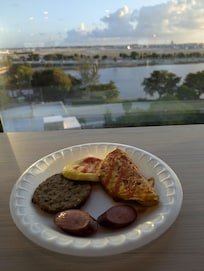 There was one restaurant and it took us over an hour and a half to get our steak salads too long of a weight not letting us know what was going on with the order. Then when we checked in, nobody explained to us that it was a energy efficient room and that you needed to leave the key in the slot so the keys would work so we walked downstairs to talk to the guy who checked this in and he made us feel very stupid and inadequate since we should’ve had known that it was any efficient room, but that was never told to us so we were considered ignorance for not knowing