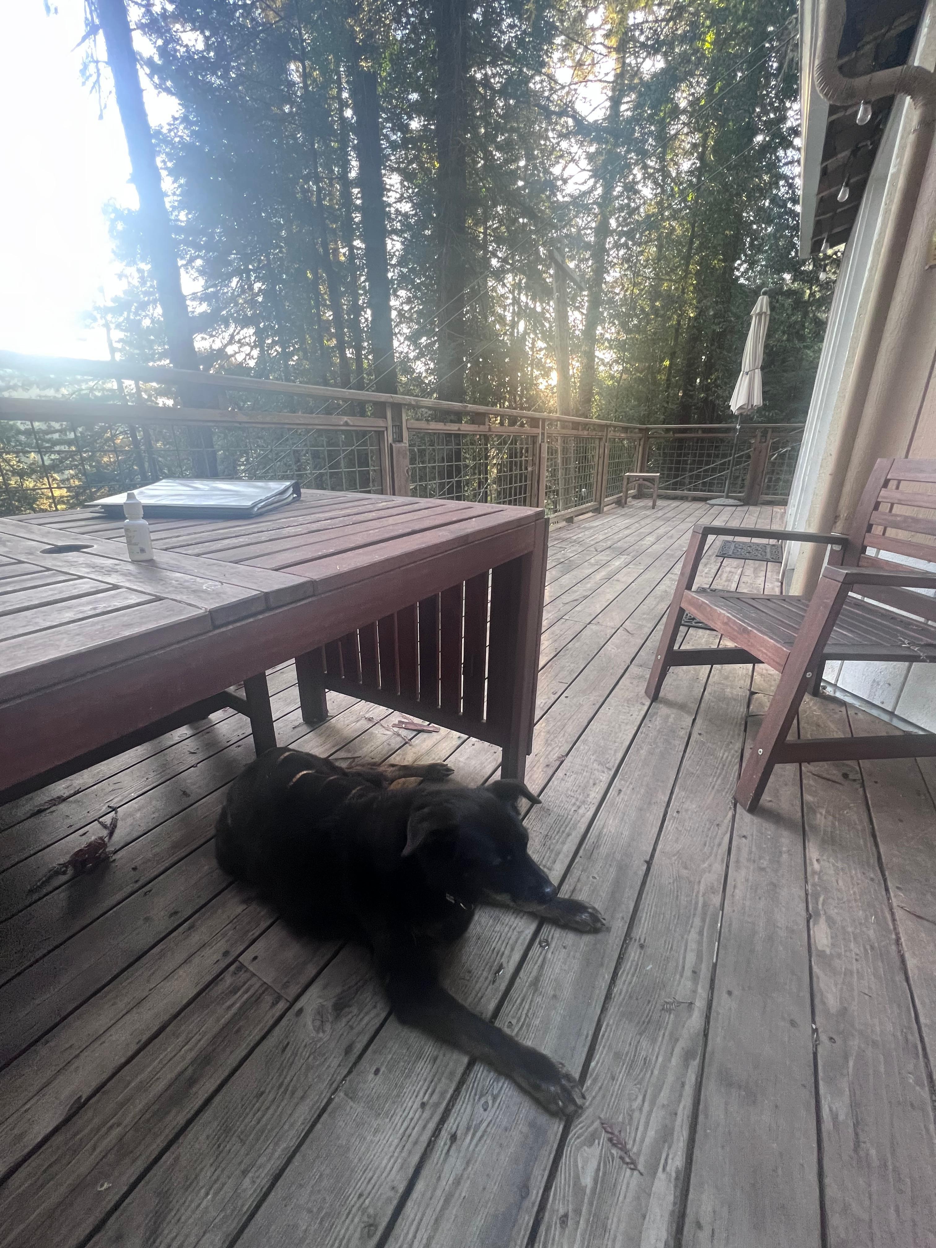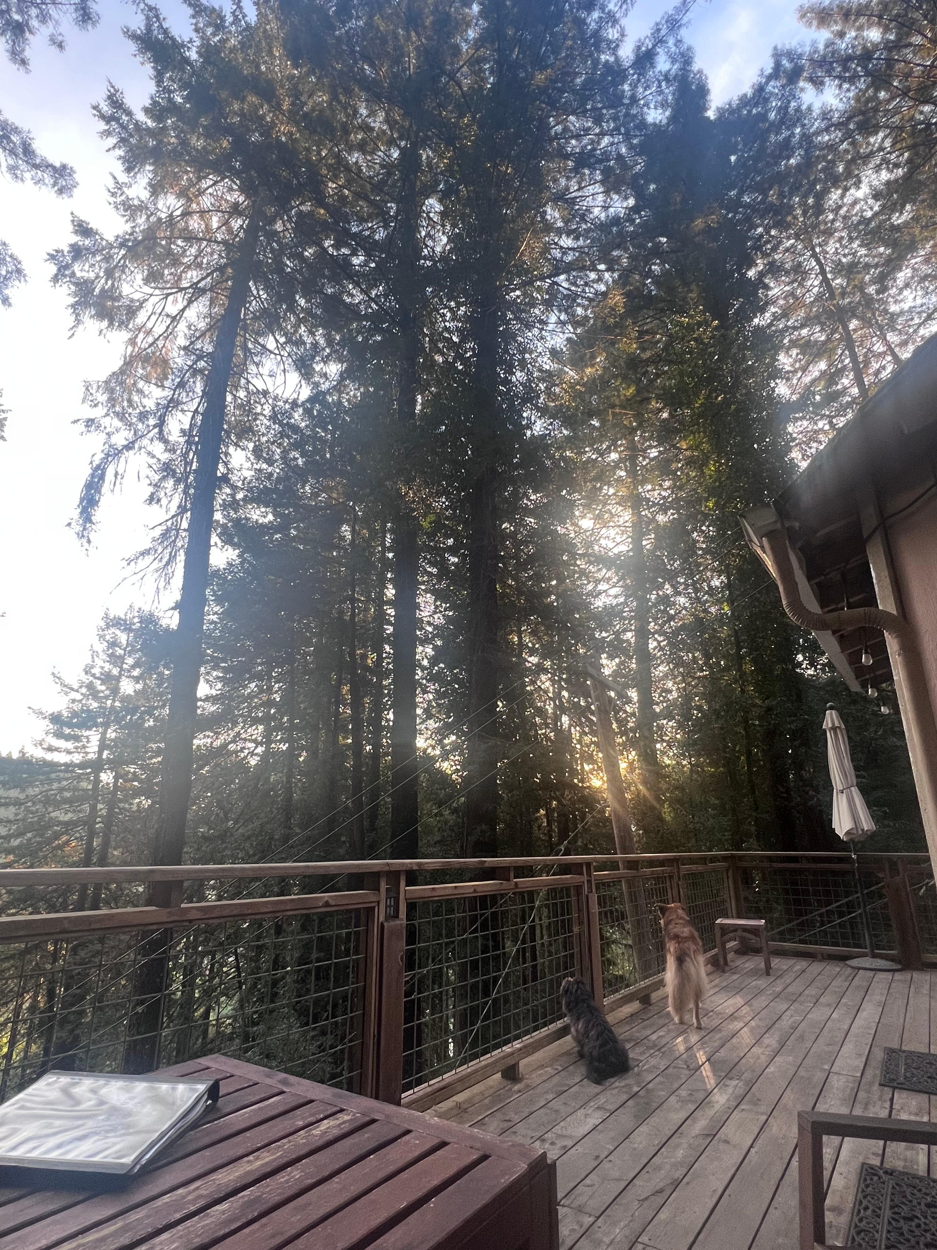 Work from HERE: Separate from the crowd and work in the lower living room looking out onto the back deck and redwood trees.