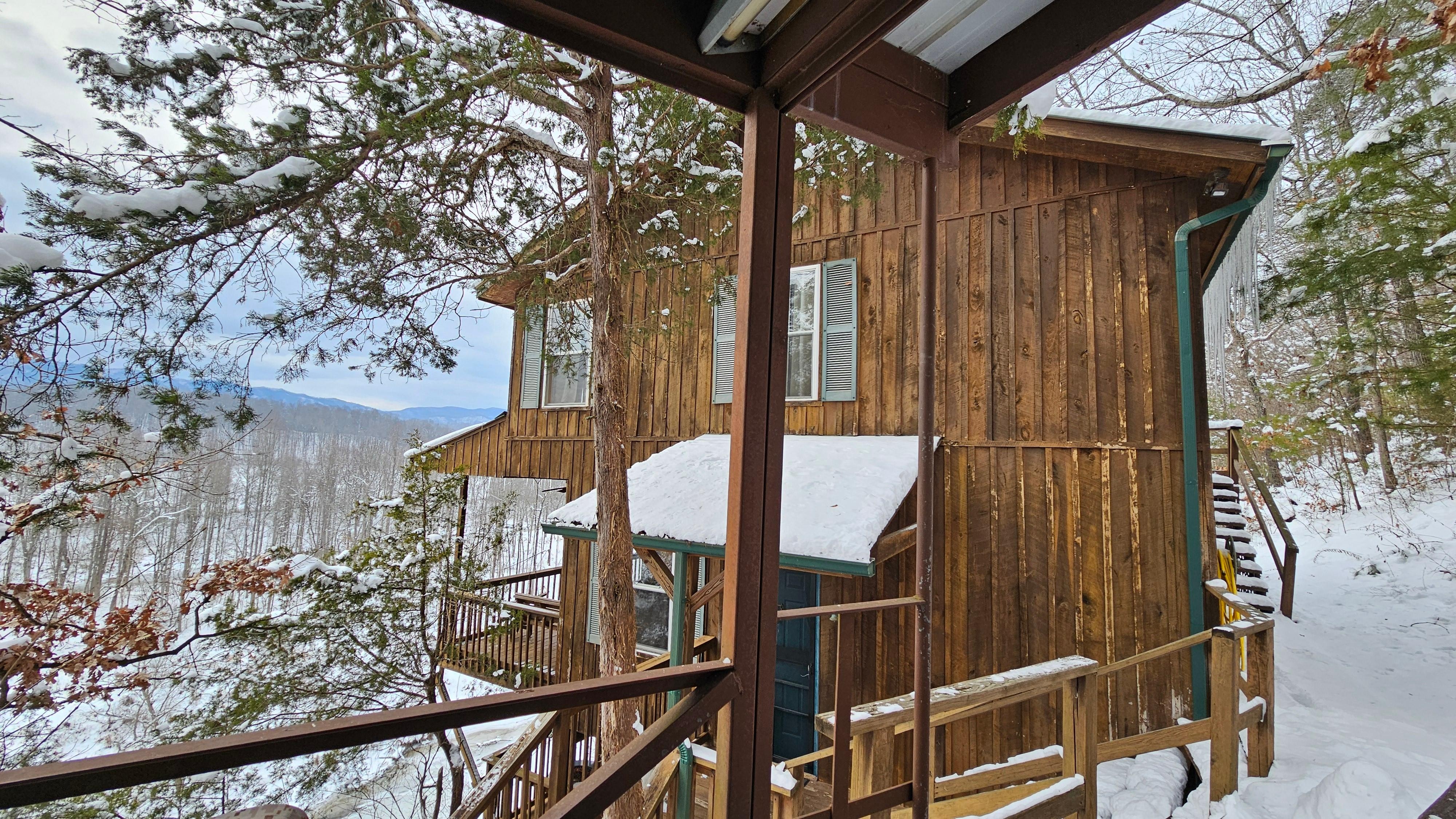 The cabin is on two levels overlooking the French Broad River. Each bedroom has phenomenal expansive views of the mountains as you look down literally over the river more than 100 feet below! Catch your breath as you walk out onto one of the cantilevered decks.