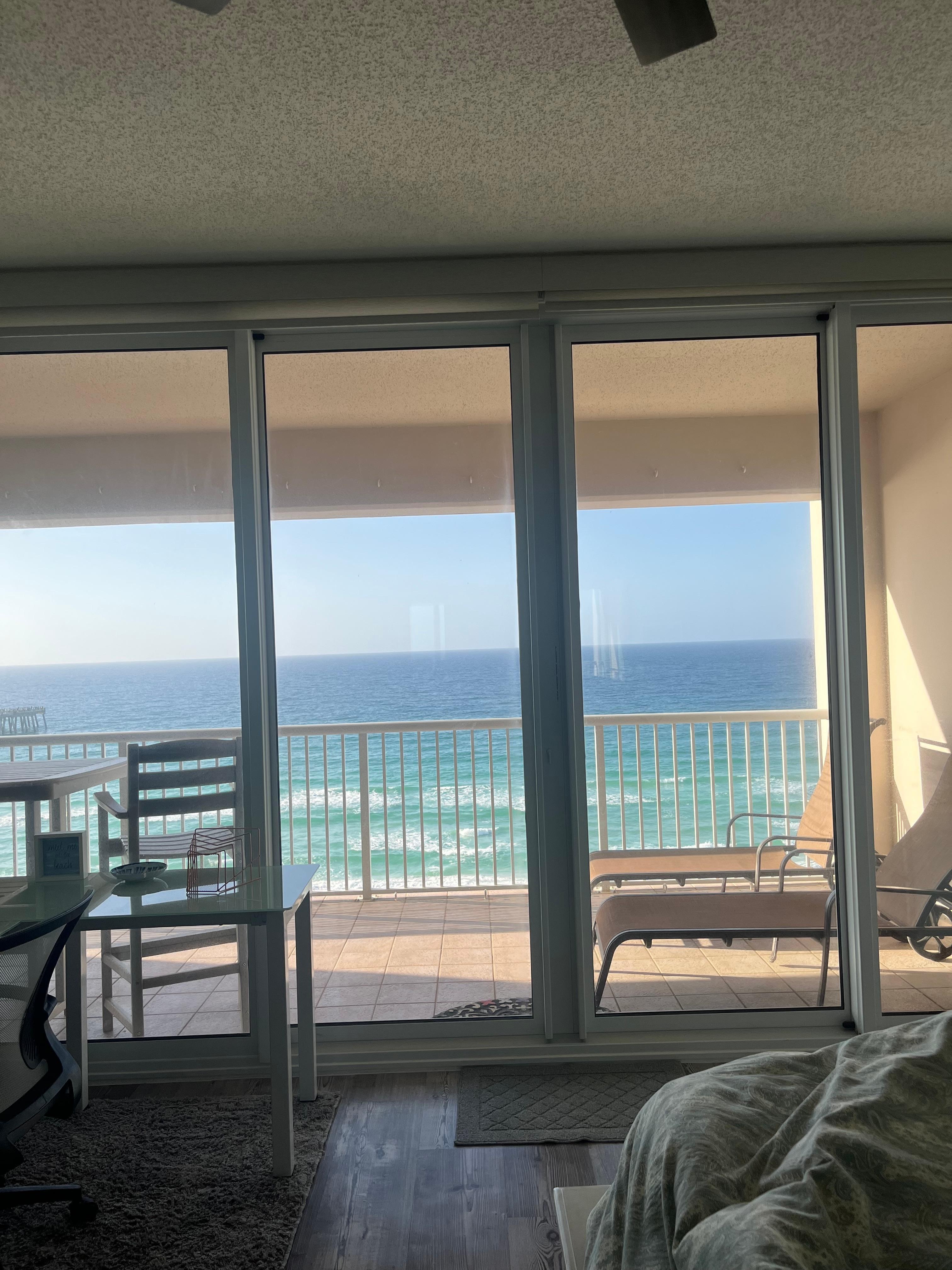 Accommodations were as advertised. Condo had everything you need. We had a great week of weather with only one overnight thunderstorm. The 3 pairs of binoculars that were provided offered long distance views of the beach and water from the large 9th floor balcony. Saw dolphins on a few different occasions during the week. After a 2nd family beach trip to Navarre, this has become our go to beach vacation. We plan to be back soon and hope to stay in this same condo.