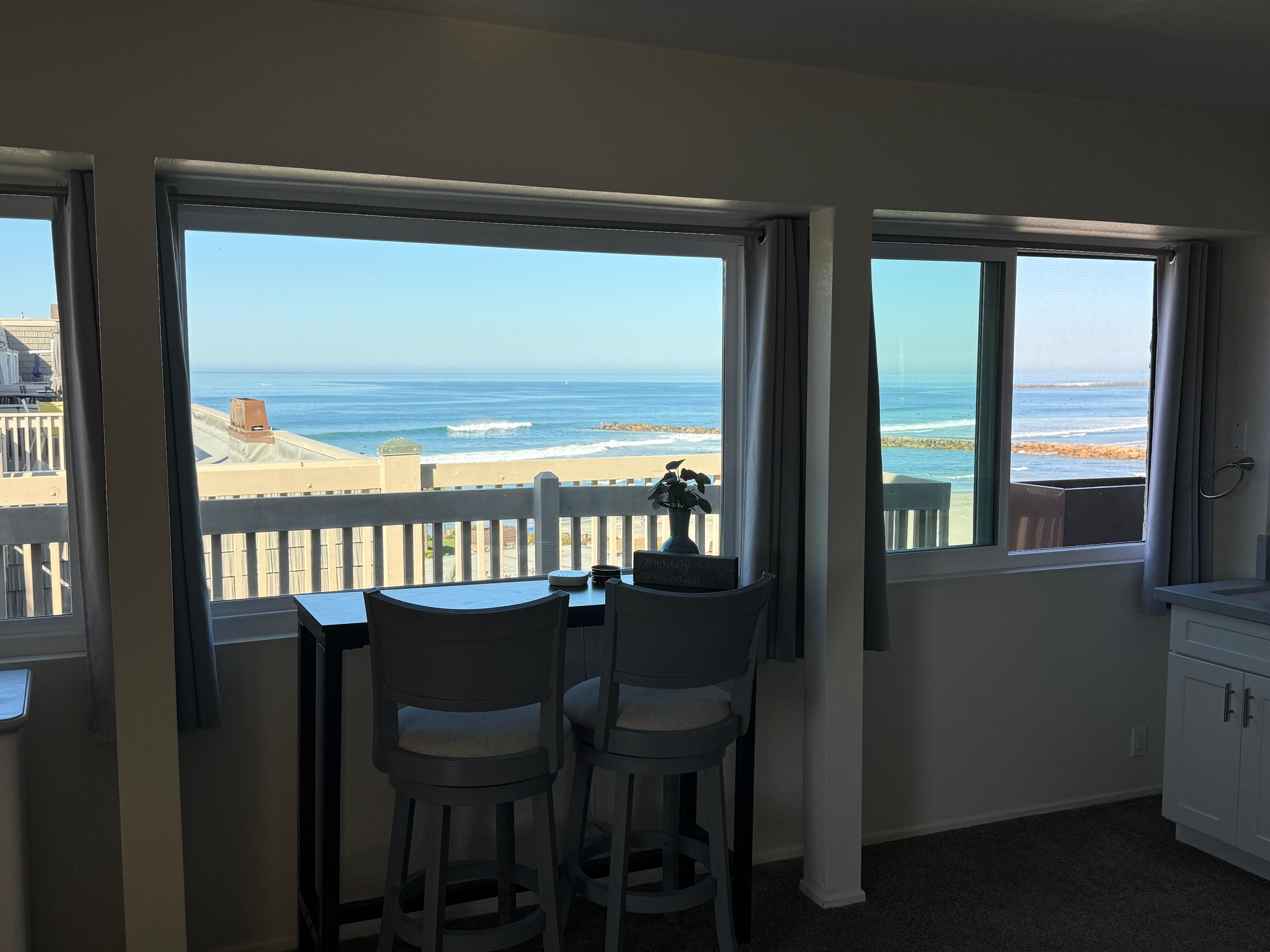 **Please note there is no AC in the unit. For the most part, Oceanside is known for its temperate climate that stays in the "Goldilocks Zone" all year round, meaning not too hot, not too cold. If you do happen to be visiting during a warm spell we do provide fans in the condo to help create cooling cross breezes.