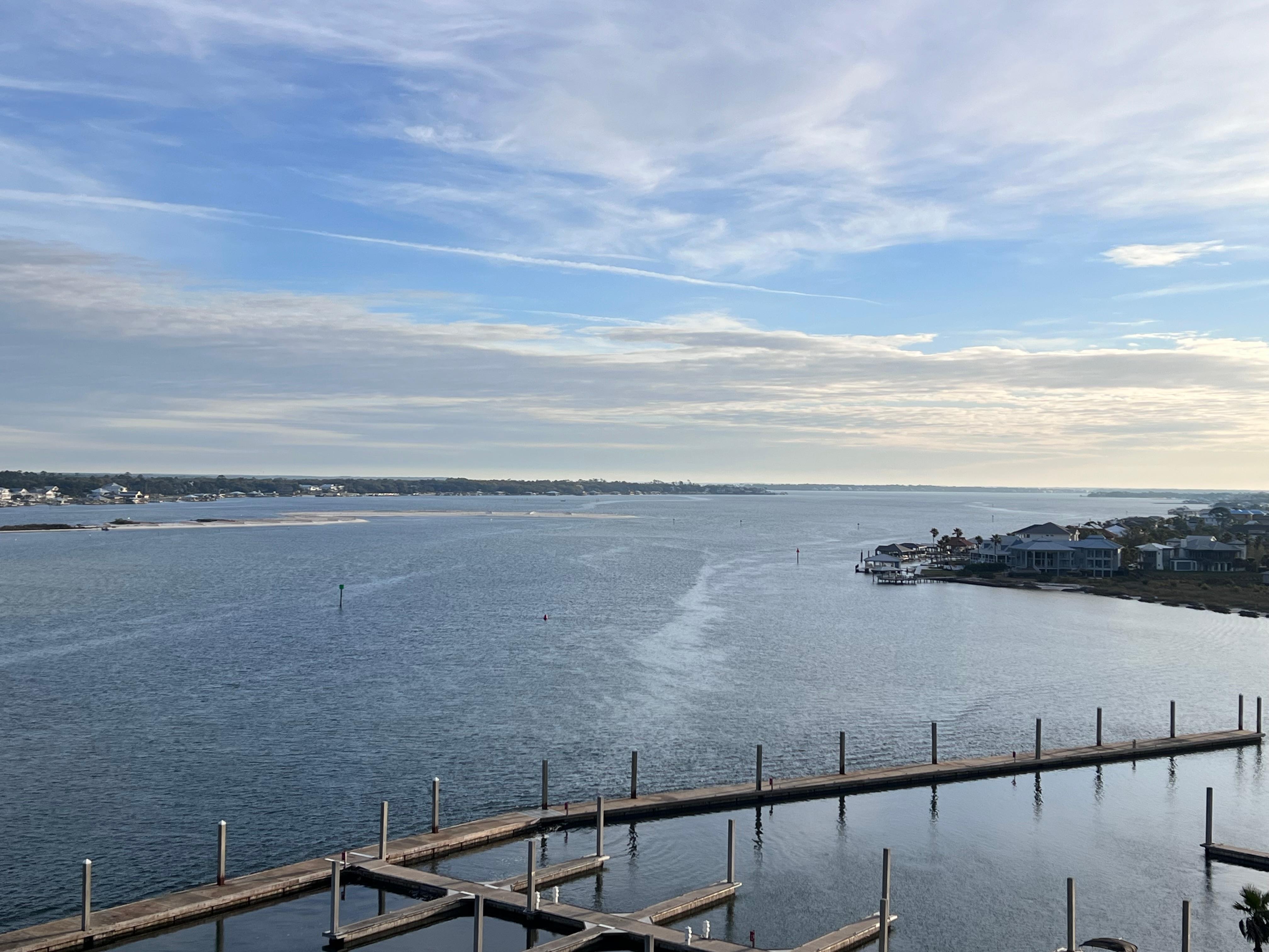 The extensive wrap-around balcony gives a spectacular direct bay views of the gulf and Perdido Pass The balcony has a table and seating for 6 to enjoy the views. The large over sized Sunbrella chairs are amazing so that you can enjoy early morning sunrises and late evenings watching the bay.