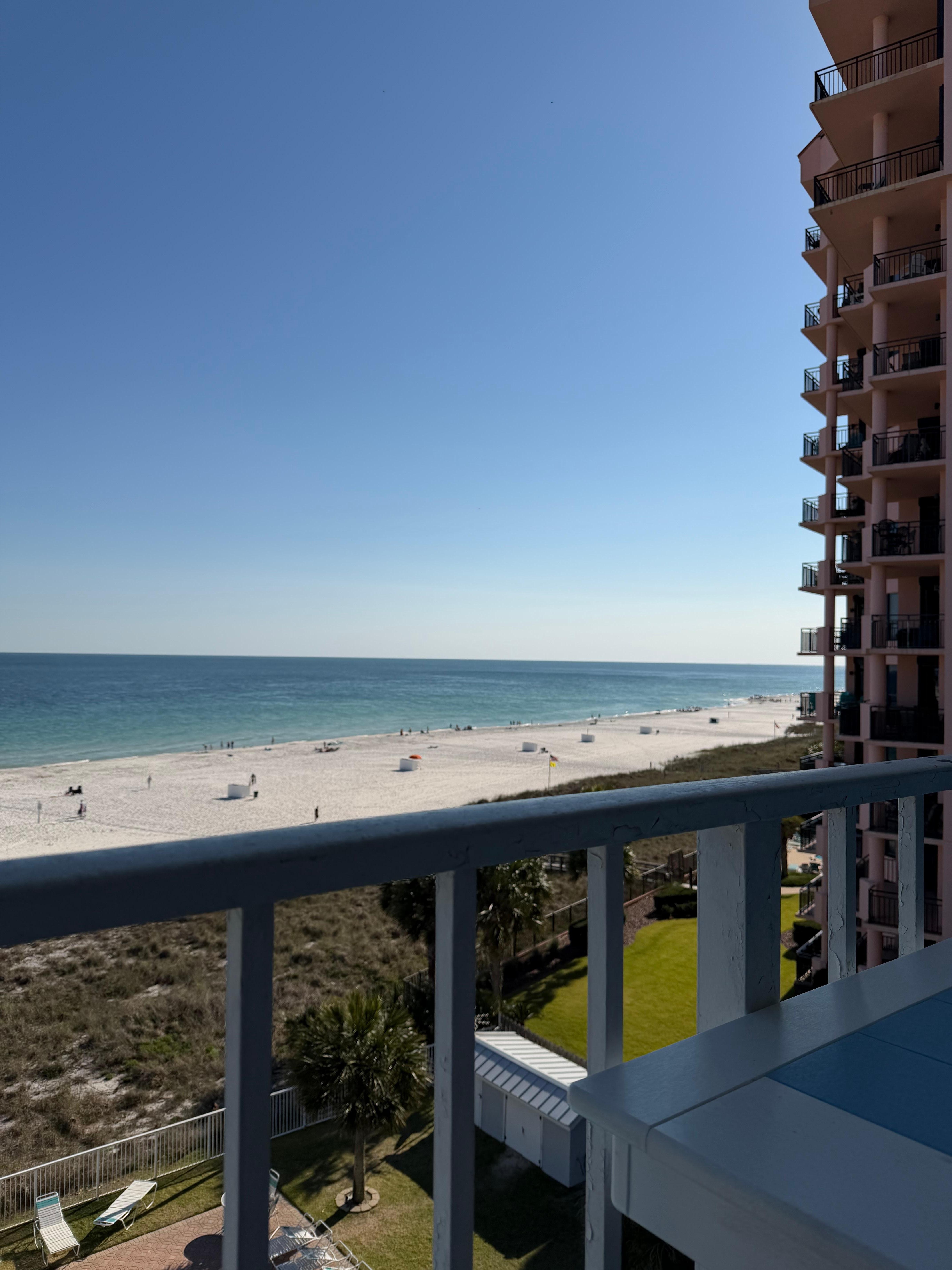 There are no management fees included with this rental. This 6th floor unit has been renovated with new furnishings. 18' tile throughout the condo. The kitchen has all the appliances, dishes, cookware, utensils needed for a great stay. Granite countertop throughout the kitchen and bar. The Living Room has a new sofa, two side chairs and a 42' TV. The master bedroom has a new king bed with linens and side tables with a 32' Samsung TV and cot for extra sleeping. The second bedroom has brand new twin beds, 32'' Samsung TV and DVD player. Both bathrooms have updated showers, linens and granite counter tops. We also have our on private balcony which overlooks the large swimming pool and gulf, with great views to watch dolphins play, parasails, boats, and people swimming.