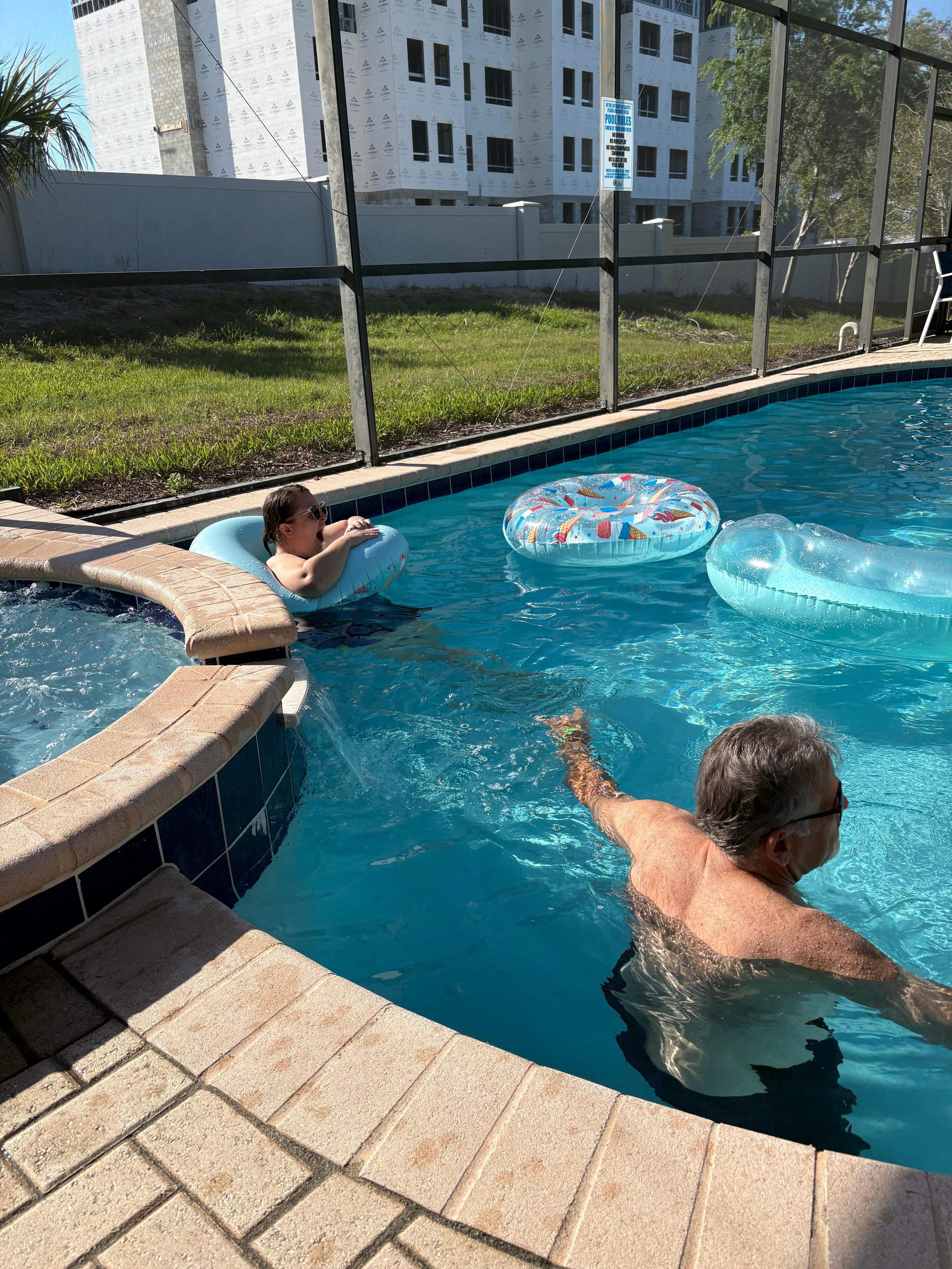 The house was roomy and spacious, and very clean. Everything was as expected and the decor very appealing. The bonus game room was a lot of fun! The pool and hot tub were both clean and we paid for heating. The only downside is that it shut off at 8 PM. We would have liked to relax in the pool/hot tub after very long days at the parks, between 8 pm and 10 pm.overall very comfortable.