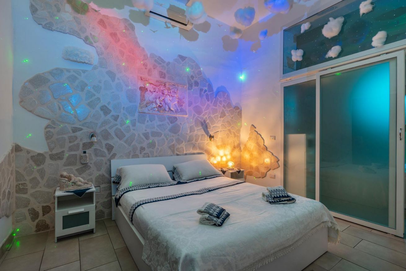 In the first room there is the kitchen with dining room and a comfortable Natuzzi King's Size sofa bed (3 and 4 bed).