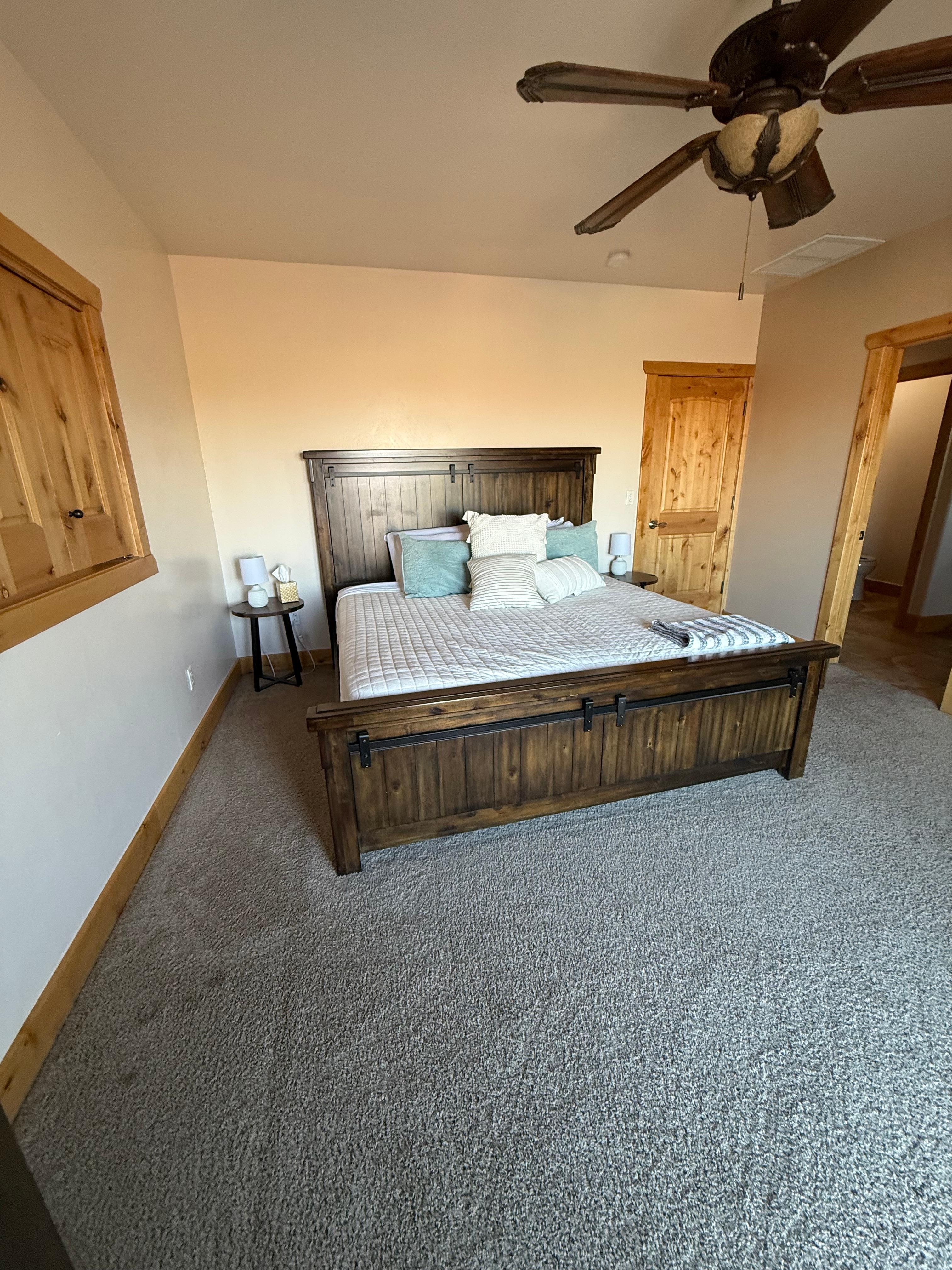 We offer 3 private bedrooms with king size beds and smart tv's. The bunkbed room is queen sized.
