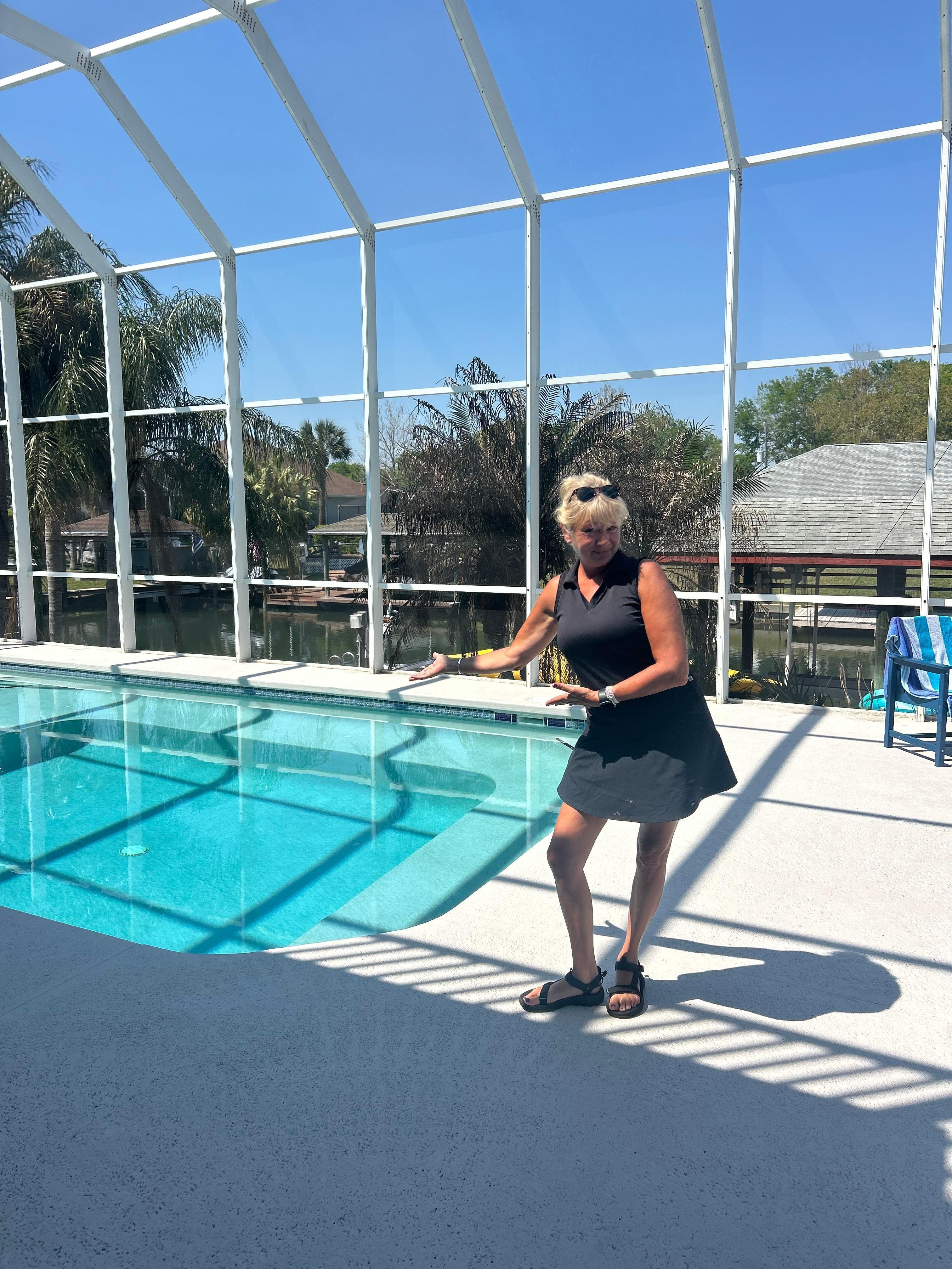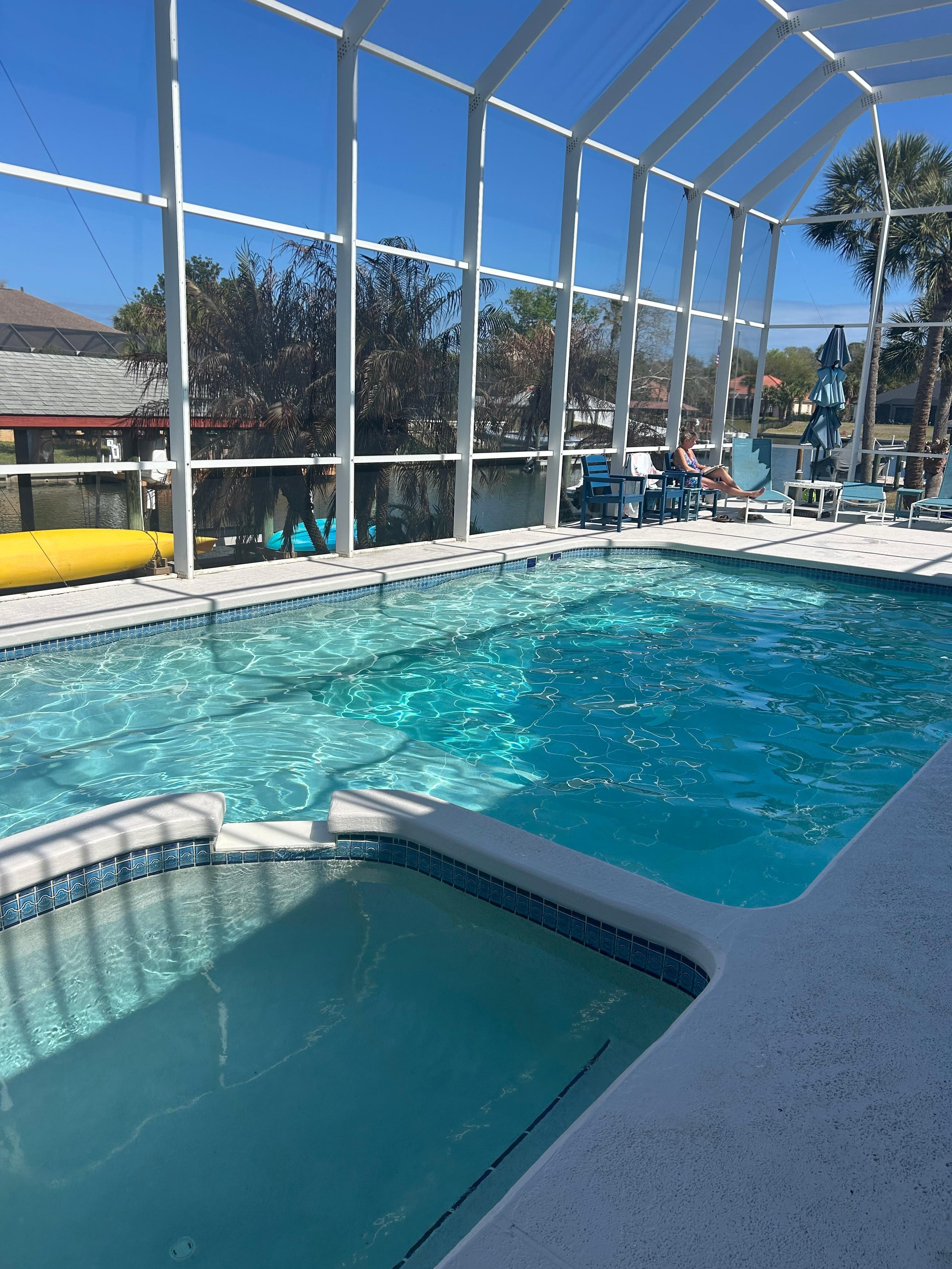 - Huge in-ground heated pool and spa with a 2-story screened enclosure