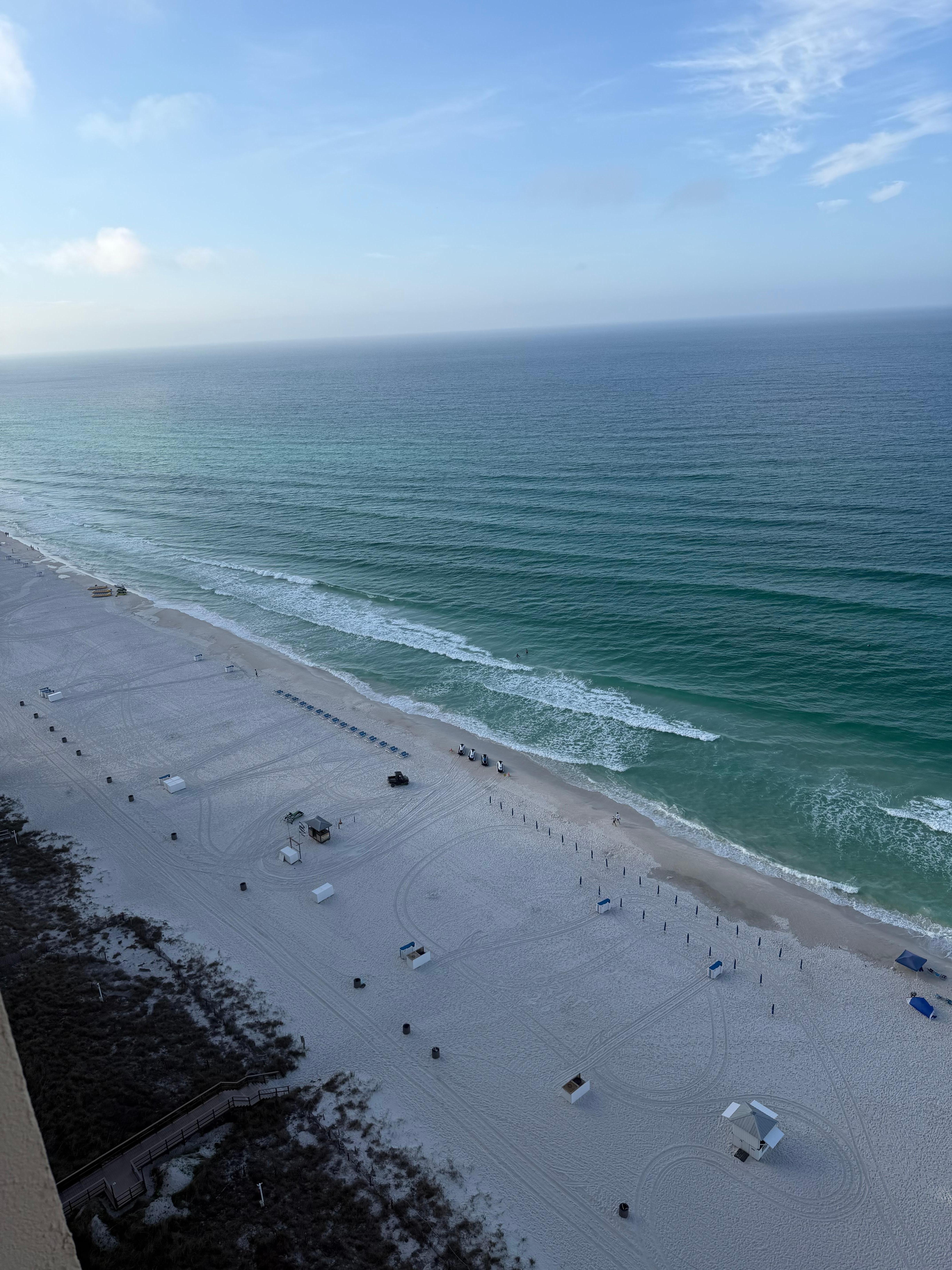 This place had it all. Beach view was amazing and we were on the top floor. I was concerned with it being fall break that we would have to wait on the elevators but maximum wait time was maybe 3-5 minutes. Very fast! Pools were clean and they have multiple pools on both sides of the establishment. There is a little market and a bar and grill on the ground floor. There is also a movie theatre in this place. Beach access was easily accessible and there are chairs available to rent.