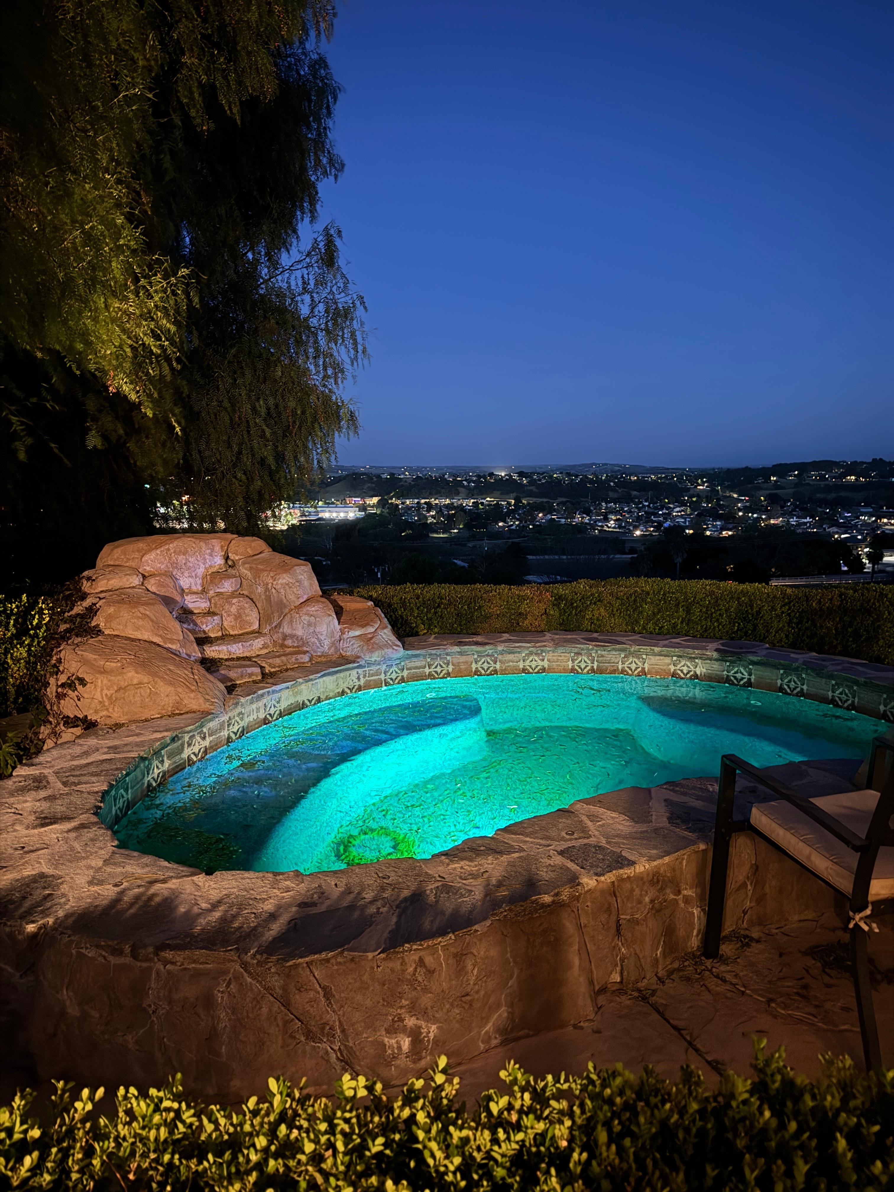 Our experience staying at this property was we want to buy it and never leave. Beautiful home furnished with everything you could need. Kitchen cookware is stocked right down to a pastry brush! Which we needed twice and were so happy to have it! The pantry has basic items fully available for use, but not to be counted on. Probably type of items left behind by other guests. Kitchen itself has a spice drawer provided by the homeowner we believe. Coffee Pot is a ground coffee brewer, bring your own favorite coffee. The views are beautiful day and night. We really enjoyed the spacious warm built in spa. Perfect working order and city lights all around us at night. Perfect view outdoor dining table for dinner outside, landscaping perfectly maintained. I was there with my husband and one other couple. We loved it so much we are positive we will return. Great comfortable furniture in the family room attached to the kitchen. Also, the wineries have views but dont miss the view at Daou winery. The tasting price is bit higher than other wineries., $50.00 per person but the view is phenomenal. Don’t miss the wine at Austin Hope. Austin’s wines are over the top great. All this and coming home to this beautiful homey property, best vacation ever. Also, the property manager…easy to communicate with and they are in fingertip reach. We sure will be back.