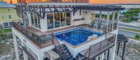Is there a private hot tub at Newly Renovated! Heated Pool, Beach Gear, Pet Friendly, Gulf Views, Beach Access?