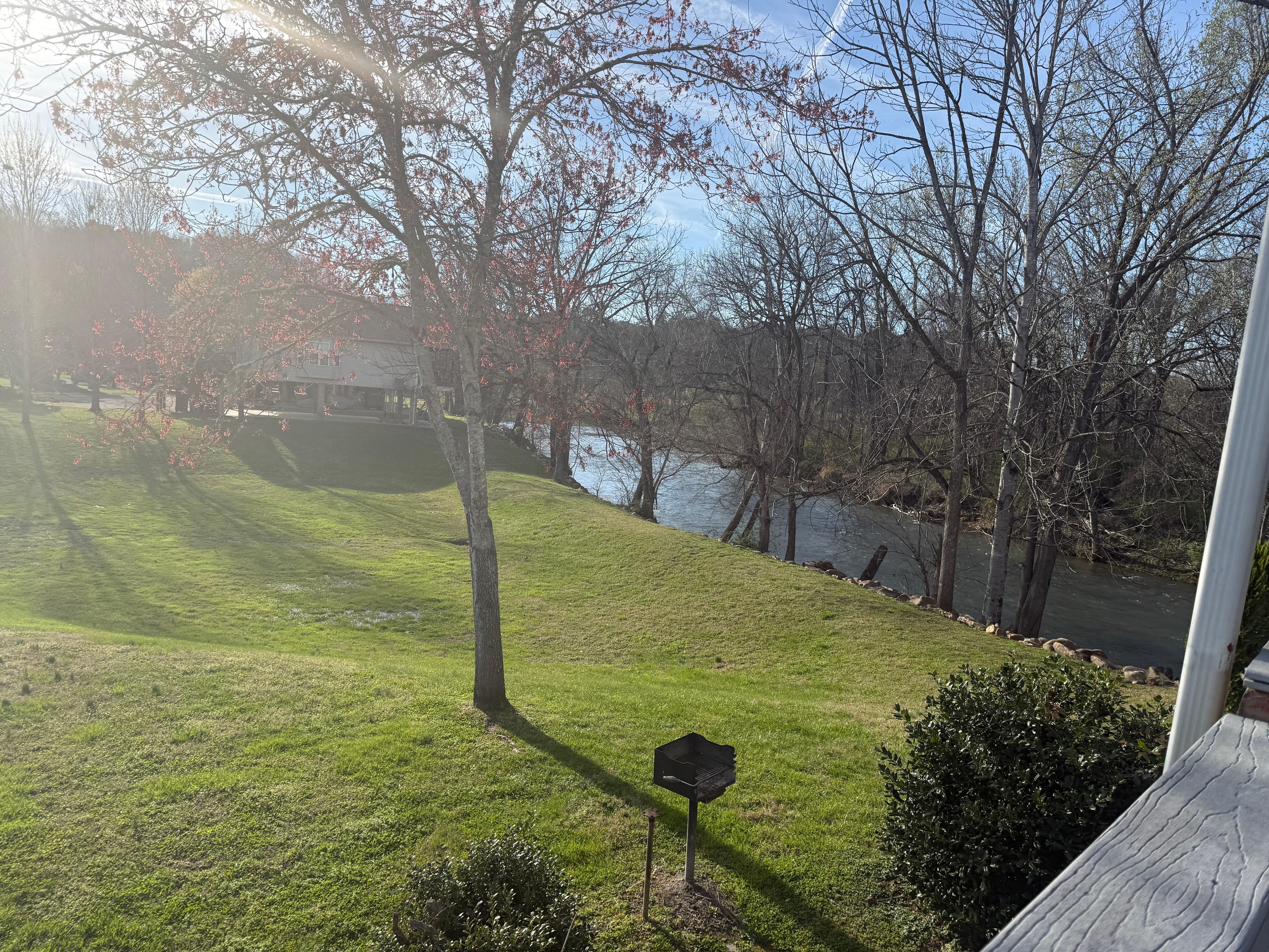 Waterfront home on the Little Pigeon River but just half mile from the Parkway. Come hear the birds and enjoy the rocking chairs and private hot tub. Fish for trout even from your deck. We offer a BBQ Grill, Picnic Table and large covered parking for up to 4 cars.