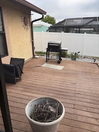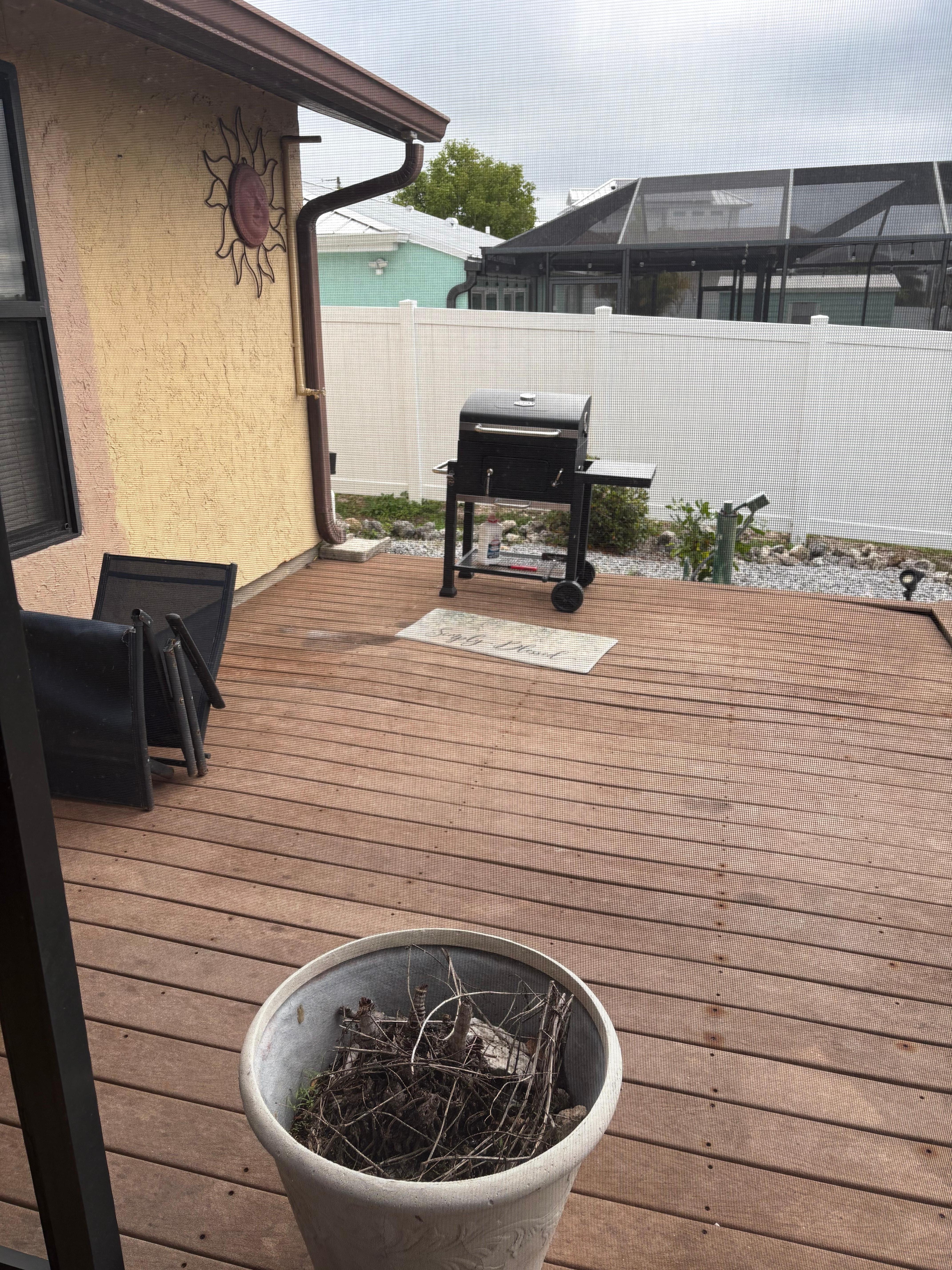 The kitchen had one small fry pan… the pool was the only thing ok even tho no furniture. It needs a lot of maintenance.? The cleaning was very upsetting. Bought pillows as they were horribly stained.. One TV in the entire home.. along with a dirty couch which was all to sit on with the exception of a folding table and chairs. And had to repair a door to get to the grill which was sitting on a deck that was very spongy. Was very upsetting to have taken two weeks for the first time and having such a horrible experience. Stuck it out because we also could not afford to go anywhere else.. Do have pictures that support all my concerns.