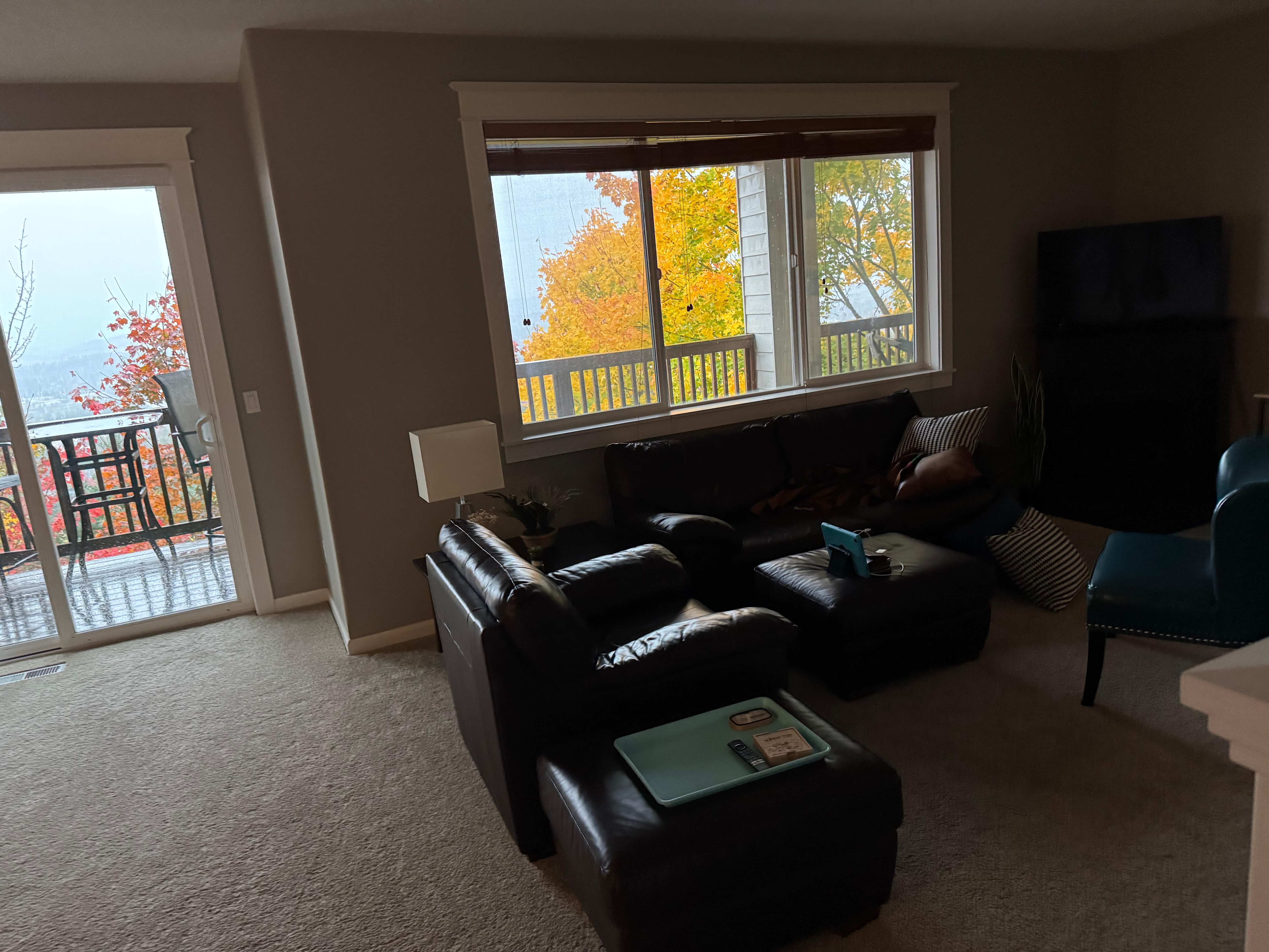 • Leather furniture, large screen TV with HDMI capability (streaming only)