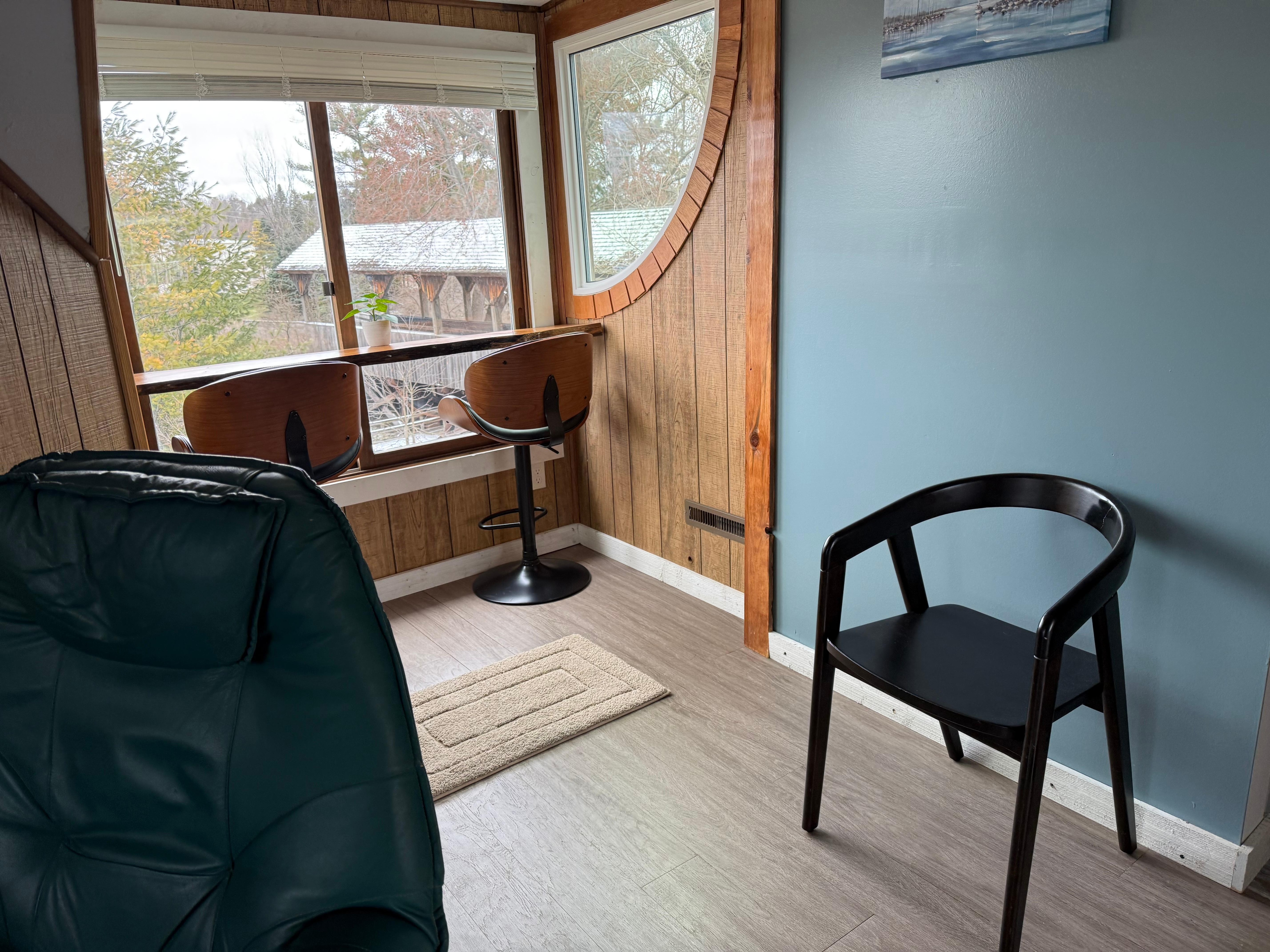 Discover this delightful 1-bedroom gem in Reed City. This charming upper parth offers everything guests need for an awesome/relaxing home away from home stay. Amenities include things like a hair dryer, heating, AC, WiFi, and a washer/dryer machine, you'll feel right at home. The cozy bedroom provides a comfortable retreat to wake in the morning and have coffee on the balcony while listening to birds or the river, while the living room with a futon offers additional space for relaxation. The nook area, which I erlooks the river, offers a place for eating or if you are on a business trip an office space . You are within walking distance from local shops, restaurants and bars/brewery. The downtown area is only 1/4 mile away. The Rambadt Nature Park is easily accessible by walking. The park is a 33 acre community park. It contains a nature trail that connects to the Linear Park Purple Trail. This includes crossing the Hershey River via the "little Mac" bridge.