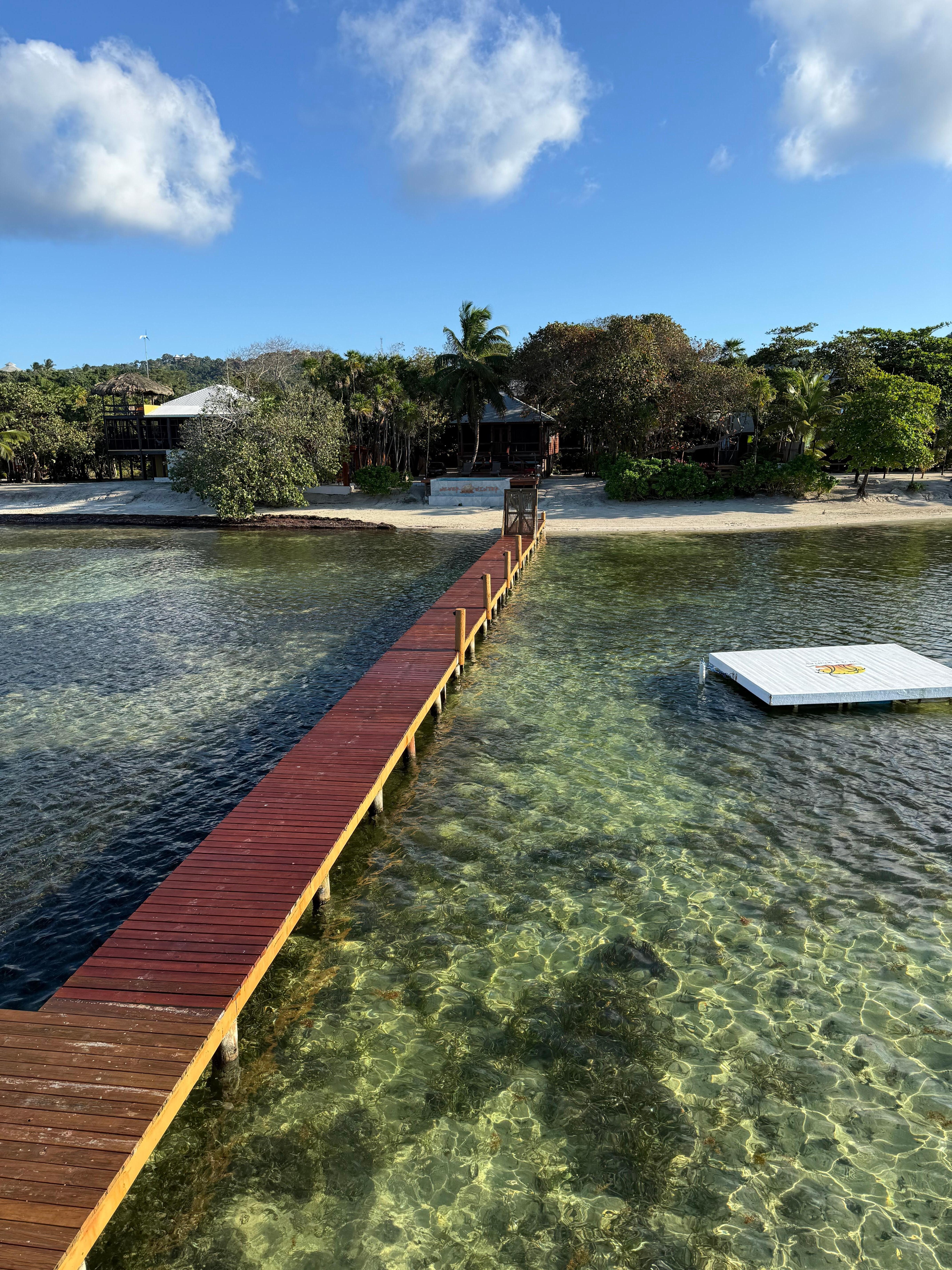 The property was a little difficult to locate if you aren't familar with the island. We did not have internet except wi-fi so no GPS. Be sure to print off a map. We were a bit nervous on the way to where we thought it was as you have to go through a small village and dirt roads and then over a one car only wooden plank bridge. But this is probably not uncommon, we just weren't expecting it. The house was beautiful and clean. We spent a lot of time on the back screened in porch when we weren't in the water. The dock was perfect. We spent a lot of time snorkeling directly from the dock and out the path towards the reef but we never made it completely out to the reef. The water from the dock was clear but not the turquoise blue I was hoping for and there was quite a bit of seagrass. The upper portion of the dock was perfect for watching sunsets. I liked the location because it was not in the touristy area like West End and West Bay. It was very quiet. Everything worked in the house. The caretaker of the property was very nice and friendly. As well as the security guard that walked the house at night. If we ever get back to Roatan, I would stay here again.