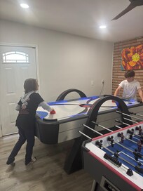We had an awesome time at The Fiesta House. We had 2 families with kids ages 5,9,and 10. There was plenty of space for everyone to feel comfortable. The kids loved the pool, ping pong table and all the outside space yo hang out. The air hockey table and foose ball table were also a hit. We were able to cook some meals comfortably and used the outside grill. We were there for 2 nights and any problems were quickly resolved by the host. They sent someone to clean the pool out bc a storm had happened earlier in the week and the microwave was out which they replaced that day. Everything was clean and well stocked as far as towels and blankets go. The beds are on the firm side but we were okay with that. Location of the Fiesta house was great. We were visiting both the San Antonio zoo and Sea World both not far. There was plenty of stores within a 4 min drive. There was an HEB and a Starbucks plus more. This house is in a neighborhood so we did hear some dogs barking but not any more than at our own neighborhood. Was not a disruption at all. We definitely plan to look up renting this space again next time we come back to San Antonio.