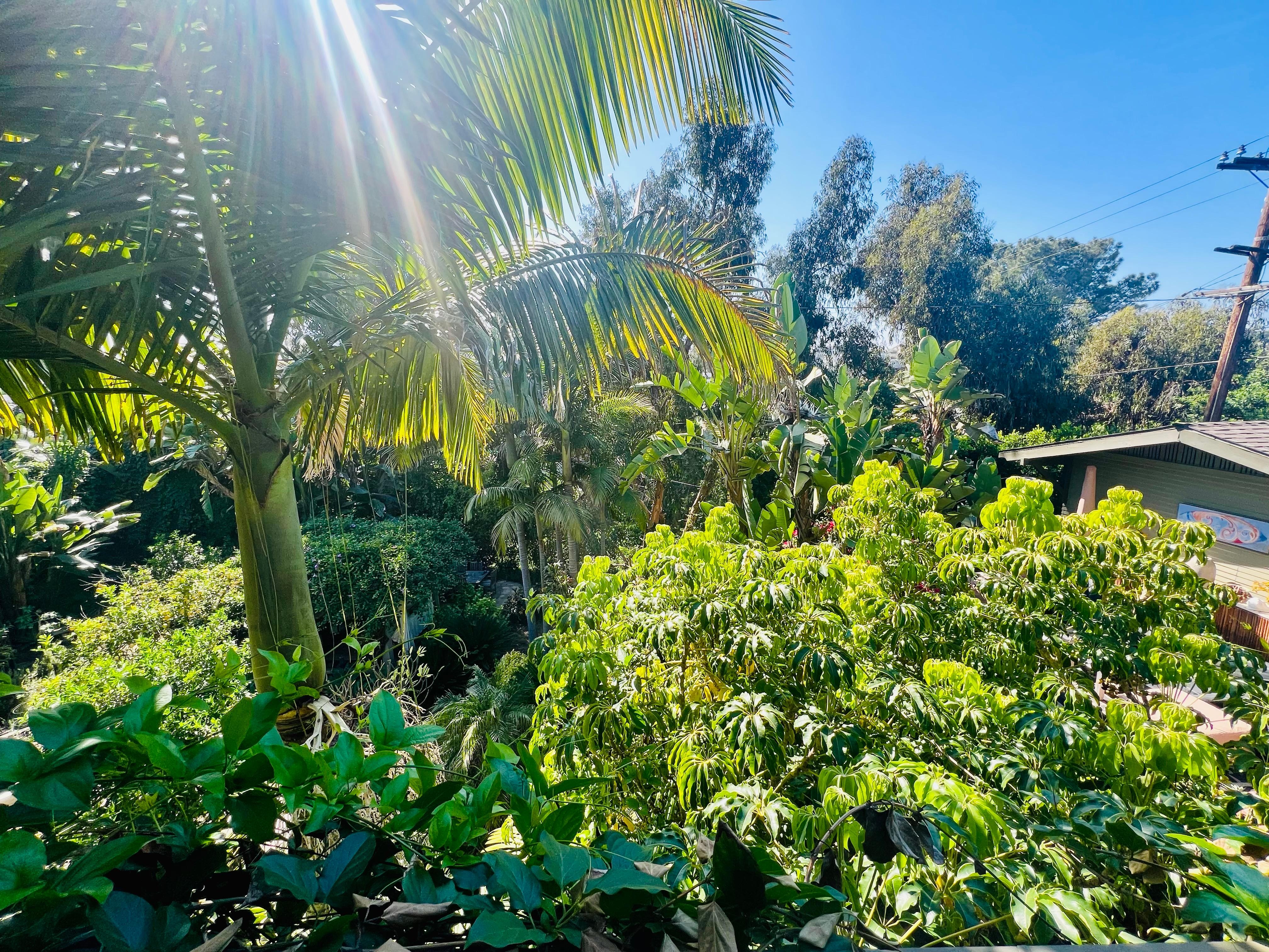 Set on an acre of tropical palms & flowering vines this Resort-like Duplex Residence offers its elegant upper floor - the spacious Treetop Suite - with its own private courtyard and handsome 5 room interior. Designed for a visiting couple or single traveler -- guests enjoy 1,000 sf of light-filled rooms with fine architectural details, an Airy Living Room with comfortable furnishings and Asian antiques, Charming dine-in Kitchen with gas range and dishwasher, Oversized dual pane windows with scenic outlooks from every window, Private laundry, Central AC, and one very spacious Bedroom w/quality King bed and en suite bathroom w/tiled walk-in shower and enameled cast iron tub. Showcased by San Diego's Save Our Heritage Tour of historic homes and surrounded by an acre of exotic palm trees & flowering vines-- this exceptional property offers its "Treetop" guests a private resort-like experience in a prized historic neighborhood adjacent Balboa Park, 5 minutes from Downtown and 15 minutes from San Diego International Airport. Across the street explore renowned Balboa Park -- 1200 acres of amazing gardens, famous Zoo, fine art museums, and award-winning theaters. Take an evening stroll through North Park's restaurant scene with over 1,000 eateries - from delicious budget-friendly tacos to superb fine dining - just blocks away along North Park's lively 30th Street.